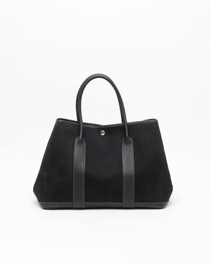 Hermes Garden Party 36 Bag- Palladium-plated hardware- Black canvas- Dual handles- Tonal lining- VintageOverall Preloved Condition: Very Good.Exterior Condition: Very Good. Light discoloration throughout canvas. Light marks and scratches at leather trim.Interior Condition: Very Good. Light marks and discoloration at lining.Hardware: Shiny with scratches.Delivered with no accessoriesMade in FranceSerial number: Square P (2012)Dimensions:Height 25 cmWidth 36 cmDepth 16 cmHandle drop 12 cmPlease note that the majority of our items are vintage and therefore have tales to tell unless stated otherwise. Therefore, please look at pictures, descriptions and measurements provided as they give you the best idea of the story this item has to tell.* Please note that when you buy a vintage product, the dimensions may vary slightly from a new one depending on previous care and storage.
