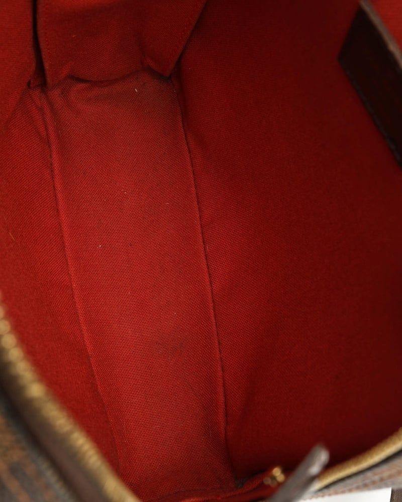 Louis Vuitton Damier Olav PM Bag- Gold-tone hardware- Brown coated canvas with damier ebene print- Adjustable crossbody strap- Red lining with one interior pocket- VintageOverall Preloved Condition: Very Good.Exterior Condition: Very Good. Scuffed and discolored along edges.Interior Condition: Very Good. Light marks at lining.Hardware: Shiny with scratches.Delivered with no accessoriesMade in FranceSerial number: MI0054Dimensions:Height 20 cmWidth 20 cmDepth 8 cmShoulder strap drop 44 cmPlease note that the majority of our items are vintage and therefore have tales to tell unless stated otherwise. Therefore, please look at pictures, descriptions and measurements provided as they give you the best idea of the story this item has to tell.* Please note that when you buy a vintage product, the dimensions may vary slightly from a new one depending on previous care and storage.
