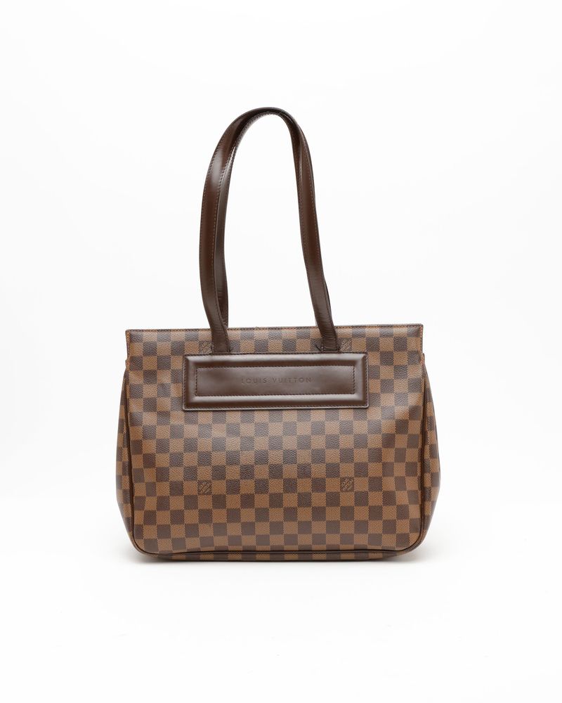 Louis Vuitton Damier Parioli PM Tote Bag- Gold-tone hardware- Brown coated canvas with damier ebene print- Dual shoulder straps- Red lining with two pockets- VintageOverall Preloved Condition: Very Good.Exterior Condition: Very Good. Light wear and creasing at straps. Scuffed corners.Interior Condition: Very Good. Light marks at lining. Vintage smell.Hardware: Shiny with scratches.Delivered with no accessoriesMade in FranceSerial number: AR0061Dimensions:Height 27 cmWidth 34 cmDepth 10 cmShoulder strap drop 26 cmPlease note that the majority of our items are vintage and therefore have tales to tell unless stated otherwise. Therefore, please look at pictures, descriptions and measurements provided as they give you the best idea of the story this item has to tell.* Please note that when you buy a vintage product, the dimensions may vary slightly from a new one depending on previous care and storage.