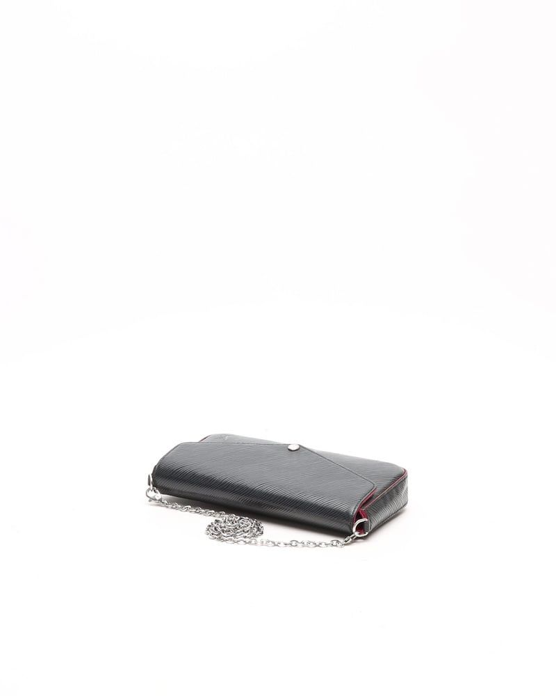 Louis Vuitton FŽlicie EPI Pochette Bag- Silver-tone hardware- Black epi leather- Detachable chainlink crossbody strap- Pink microfiber lining with one pocket- VintageOverall Preloved Condition: Very Good.Exterior Condition: Very Good. Marks and scratches on leather.Interior Condition: Very Good. Light discolouration. Light vintage smell.Hardware: Shiny with scratches.Delivered with detachable chainlink crossbody strapMade in FranceSerial number: TJ1137Dimensions:Height 12 cmWidth 21 cmDepth 3 cmShoulder strap drop 56 cmPlease note that the majority of our items are vintage and therefore have tales to tell unless stated otherwise. Therefore, please look at pictures, descriptions and measurements provided as they give you the best idea of the story this item has to tell.* Please note that when you buy a vintage product, the dimensions may vary slightly from a new one depending on previous care and storage.