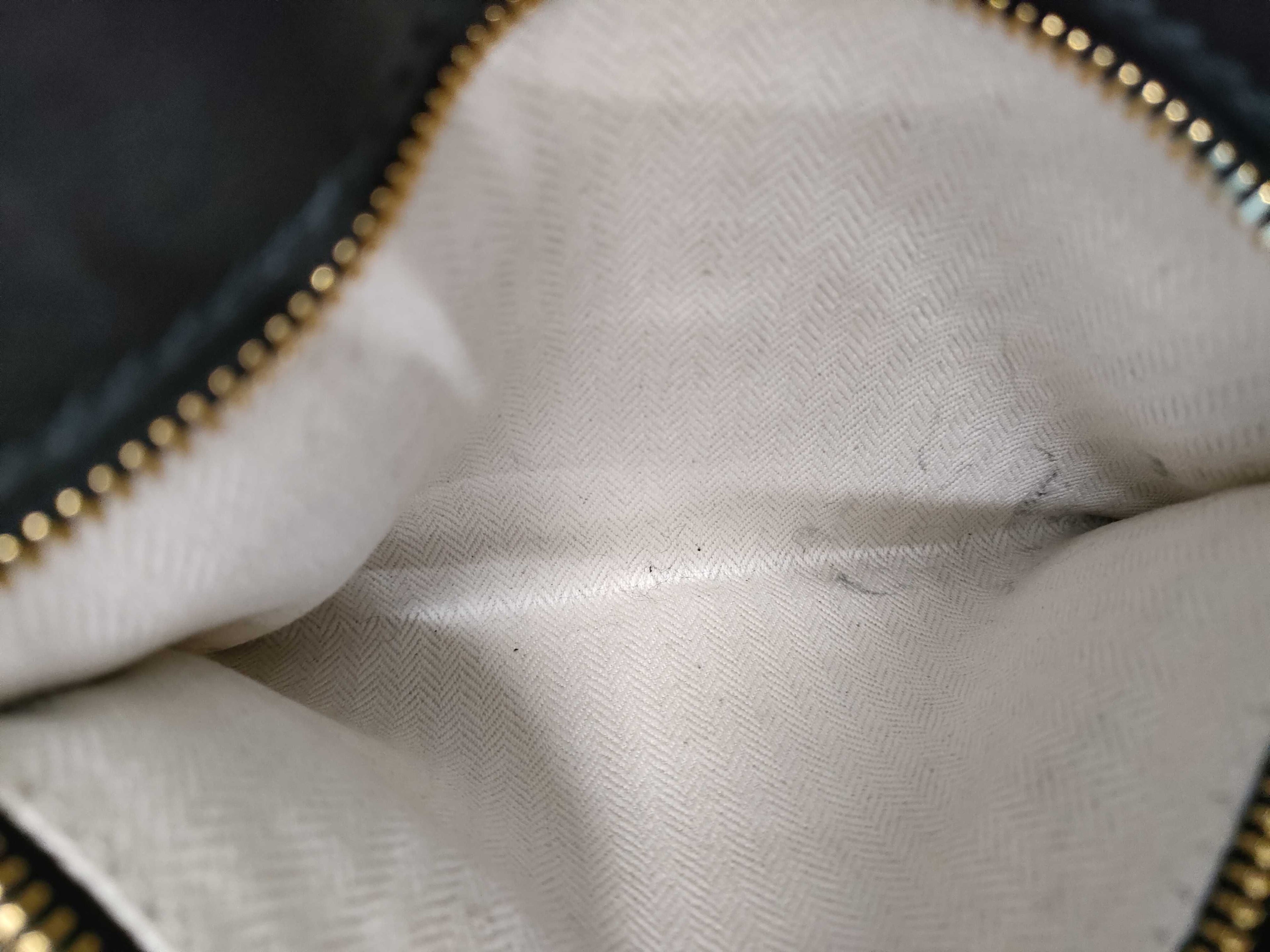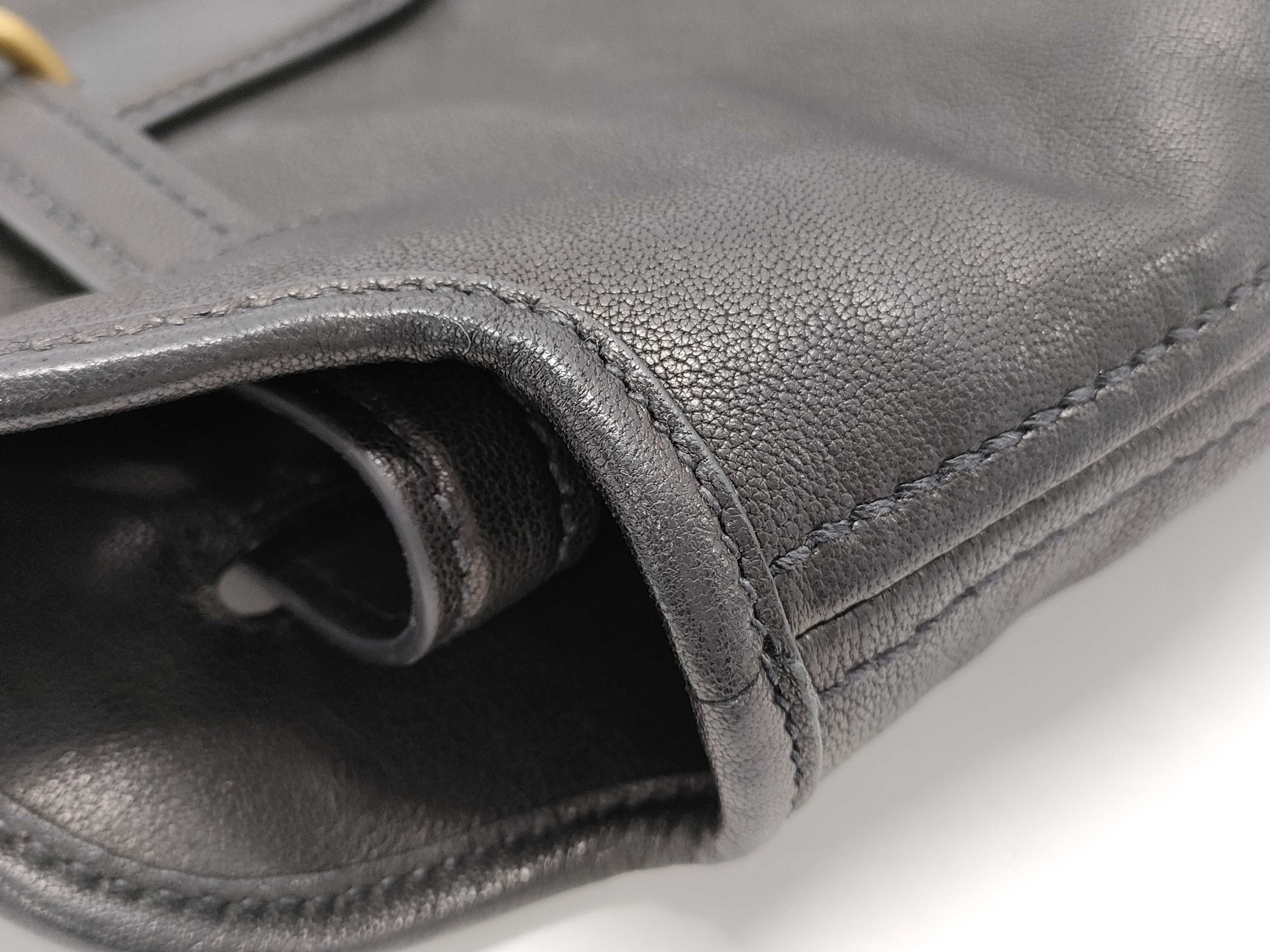 Exterior: Light wear and rubbing on the leather, particularly near the corners and edges. The gold-tone hardware shows some minor scratches.