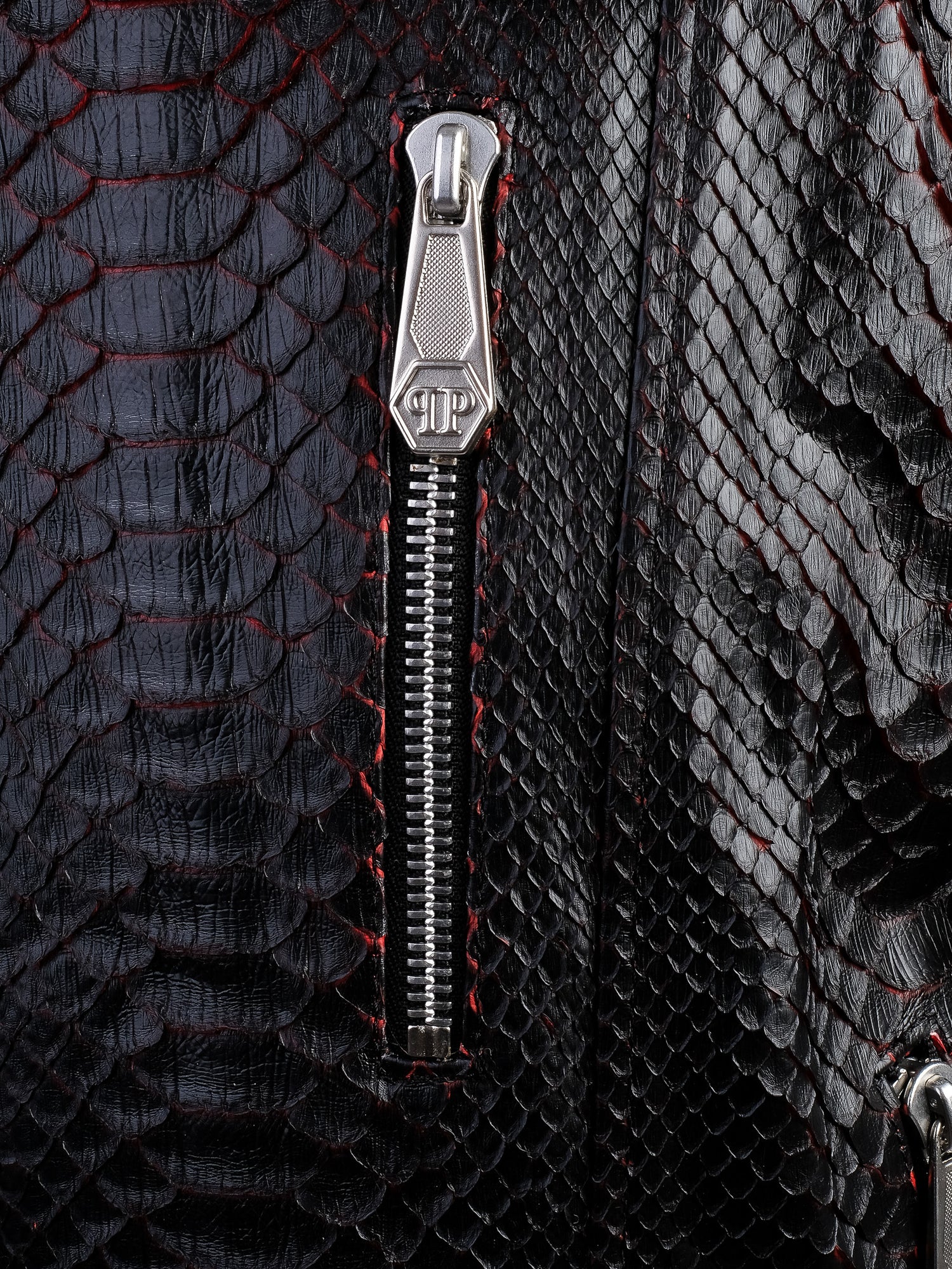 Perfect Phillipp Plein Black Textured Leather Jacket Size XL. This stunning women's jacket combines elegance with bold style, showcasing a striking black textured leather finish adorned with a unique snakeskin pattern. The jacket features silver zippers for a modern touch and a stylish belt that cinches at the waist, enhancing your silhouette. The back of the jacket is distinguished with the embossed word "PLEIN," making it a statement piece in your wardrobe. Condition is perfect, showing no signs of wear, and fits true to size. Designed for a confident woman, this XL jacket is suitable for a variety of occasions, from casual outings to more sophisticated events. Care instructions recommend dry cleaning to maintain the premium quality of the leather. Perfectly crafted, this jacket is a must-have for those who appreciate high-end fashion and unique design. Elevate your outerwear collection with this exquisite piece from Phillipp Plein, ensuring you stand out in any crowd. Please message me to confirm shipping timeframe. My full-time job involves traveling often, and shipping out may take longer than usual. Thanks for your interest.