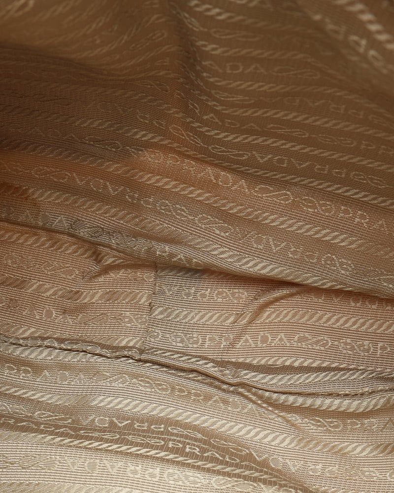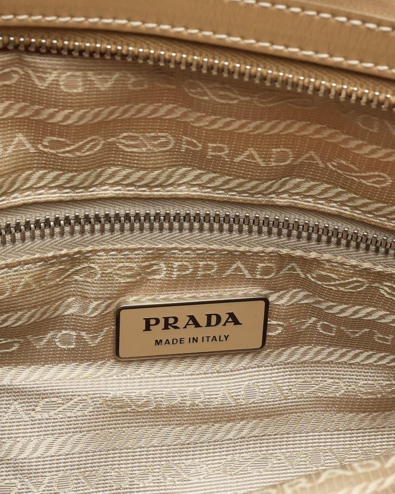 Prada Tessuto Hobo Bag- Silver-tone hardware- Beige tessuto nylon- Dual handles- Tonal jacquard lining with one interior pocket- VintageOverall Preloved Condition: Very Good.Exterior Condition: Very Good. Light cracks throughout leather trim. Small marks at nylon.Interior Condition: Very Good. Marks on lining.Hardware: Shiny with scratches.Delivered with padlock, keys, and clochetteMade in ItalyDimensions:Height 19 cmWidth 34 cmDepth 10 cmHandle drop 20 cmPlease note that the majority of our items are vintage and therefore have tales to tell unless stated otherwise. Therefore, please look at pictures, descriptions and measurements provided as they give you the best idea of the story this item has to tell.* Please note that when you buy a vintage product, the dimensions may vary slightly from a new one depending on previous care and storage.