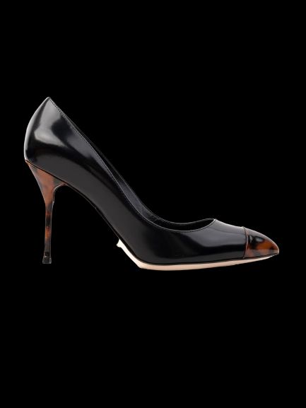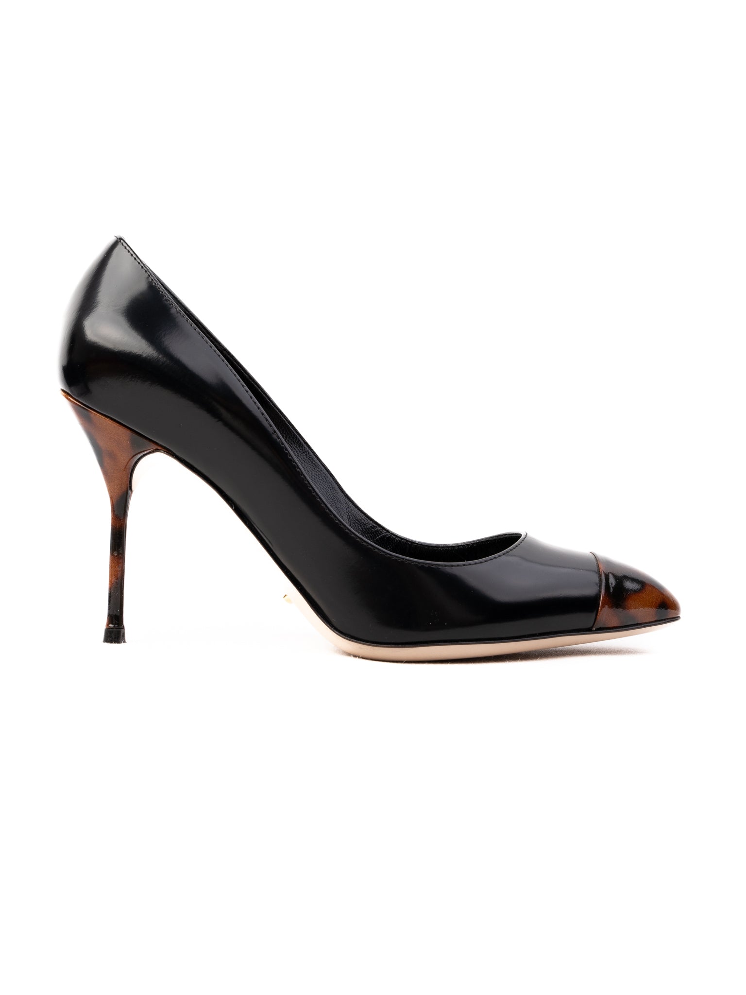 Sergio Rossi Black Leather High-Heeled Shoes Size 37 with Tortoiseshell Accent