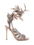 Sergio Rossi White Leather High-Heeled Sandals with Rhinestones