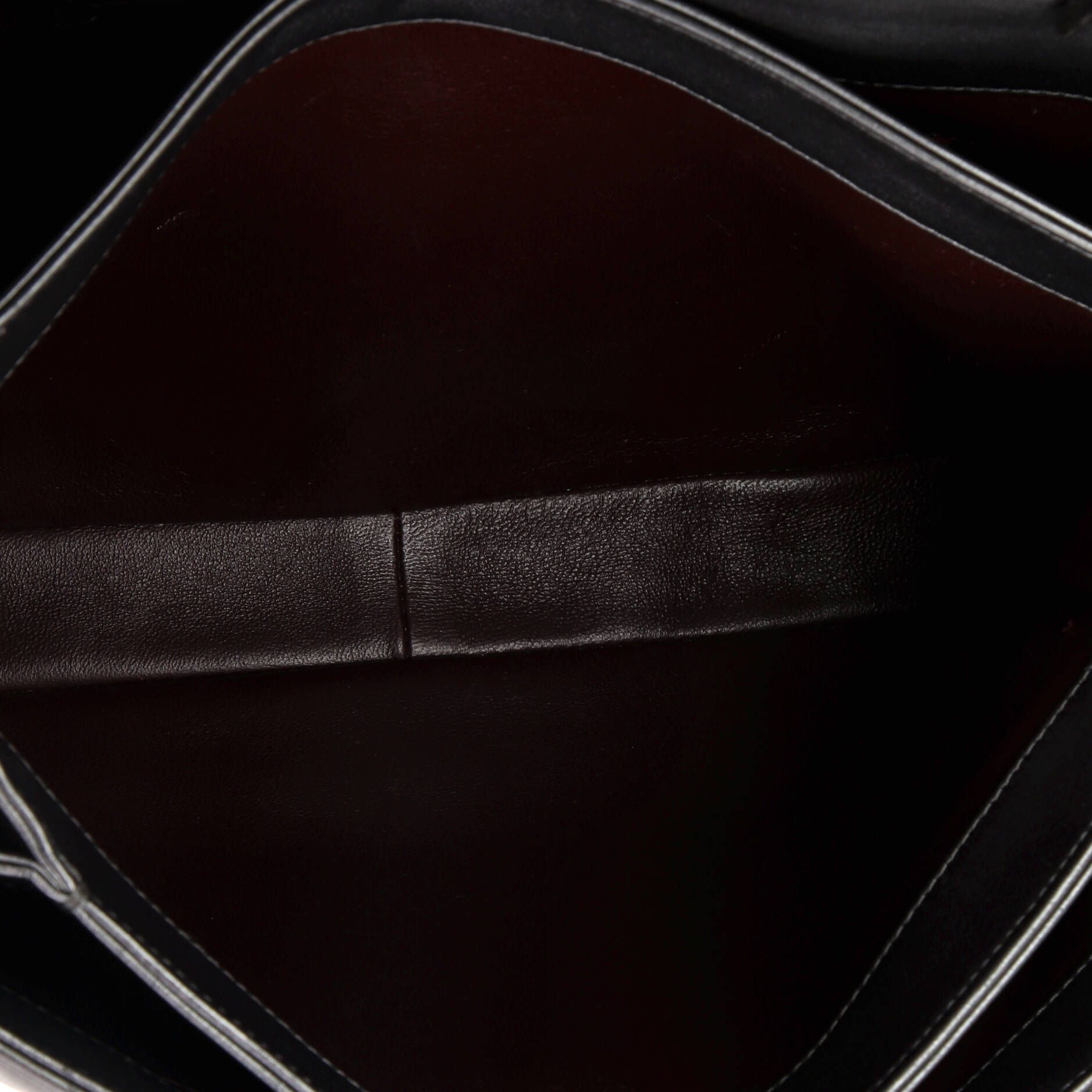 Condition:Good. Creasing, darkening, moderate scuffs and wear on exterior, handle and strap, minor indentations on handle and front underneath flap. Scuffs and wear underneath flap and in interior, marks in interior, scratches on hardware.