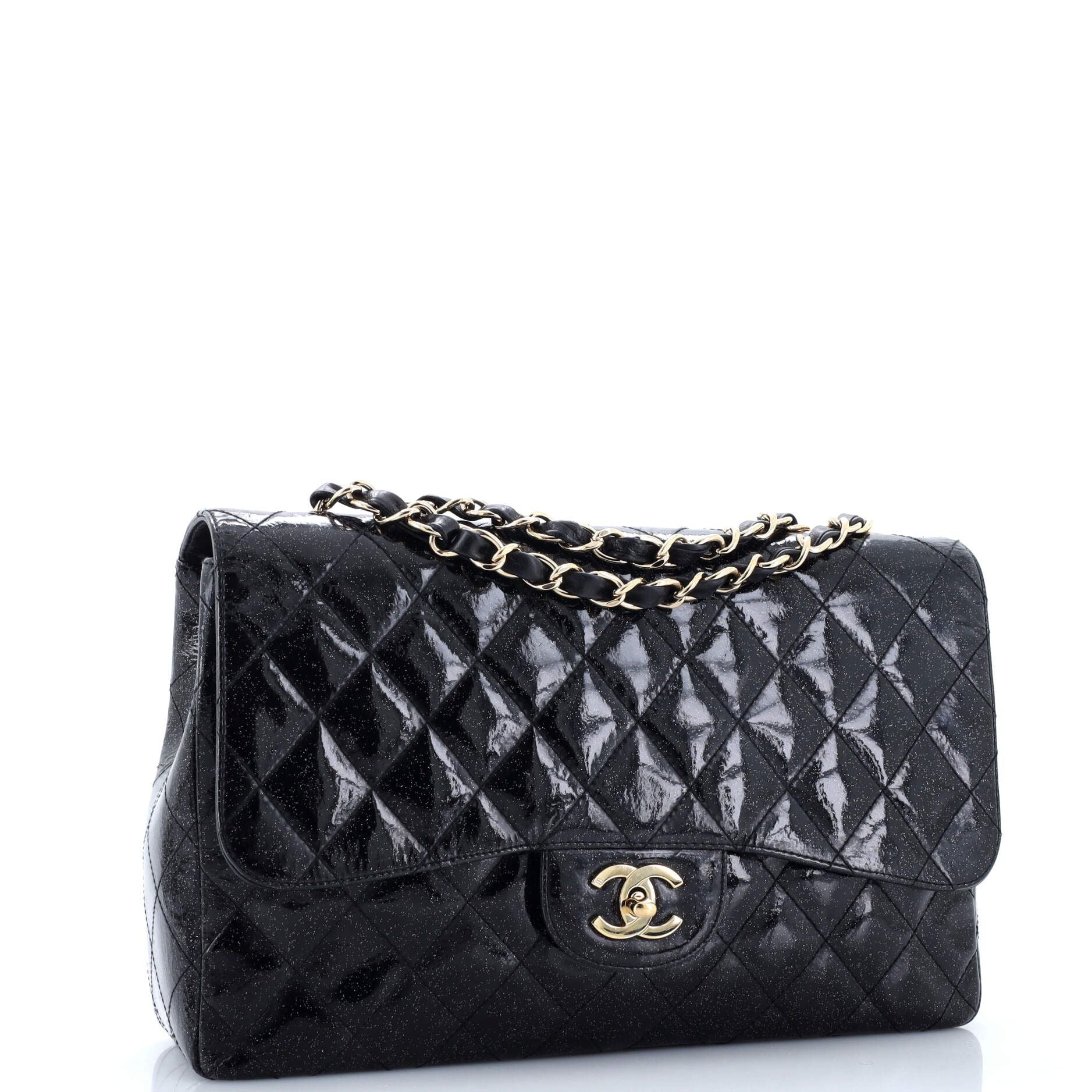 Chanel Vintage Classic Single Flap Bag Quilted Glitter Patent Jumbo