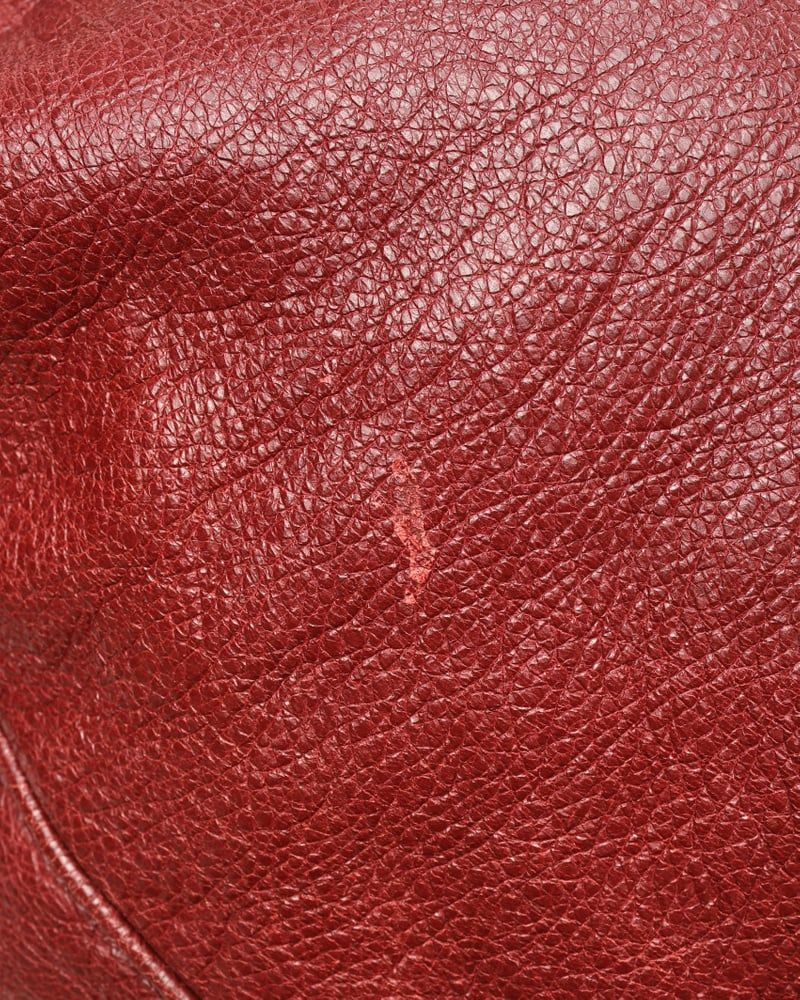 Balenciaga Weekender Bag- Silver-tone hardware- Red leather- Dual rolled handles with detachable shoulder strap- Black lining with three pocket and one exterior pocket- VintageOverall Preloved Condition: Very Good.Exterior Condition: Very Good. Marks on leather. Light dry leather. Marks at bottom.Interior Condition: Very Good. Marks on lining. Light vintage smell.Hardware: Shiny with scratches.Delivered with detachable shoulder strapMade in ItalyDimensions:Height 38 cmWidth 45 cmDepth 15 cmHandle drop 10 cmShoulder strap drop 39 cmPlease note that the majority of our items are vintage and therefore have tales to tell unless stated otherwise. Therefore, please look at pictures, descriptions and measurements provided as they give you the best idea of the story this item has to tell.* Please note that when you buy a vintage product, the dimensions may vary slightly from a new one depending on previous care and storage.