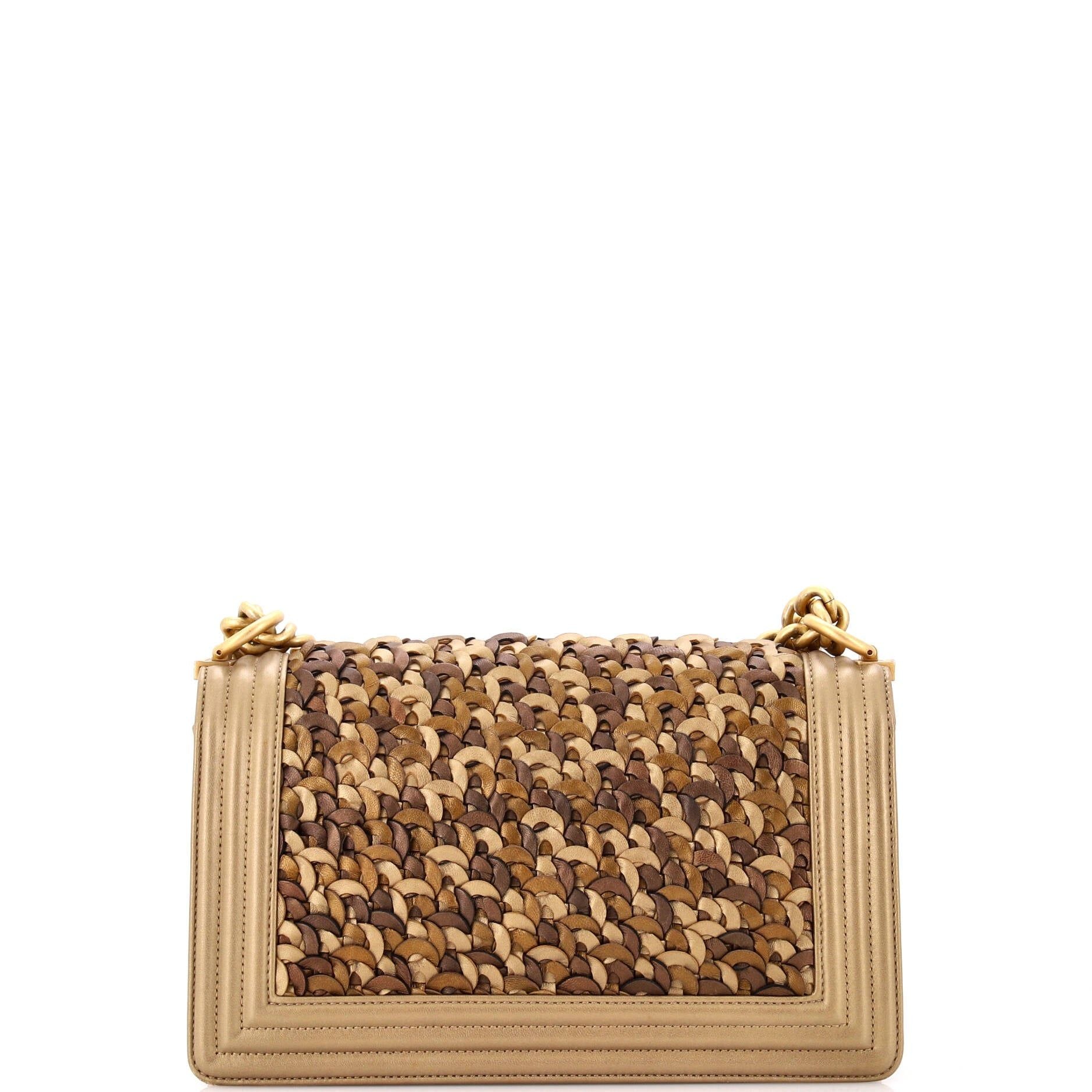 Chanel Boy Flap Bag Braided Metallic Lambskin Old Medium