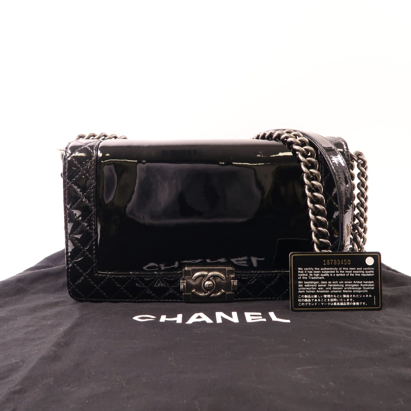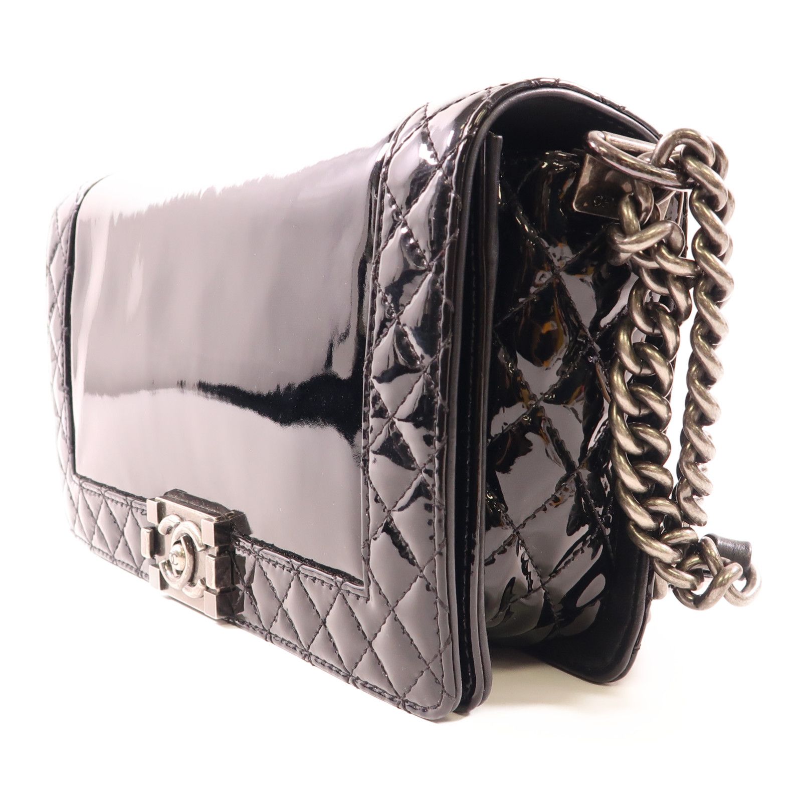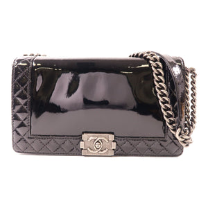 Item Name: CHANEL Black Lacquered leather Boy Chanel 11 crossbody shoulder bag Shoulder Bag Patent leather