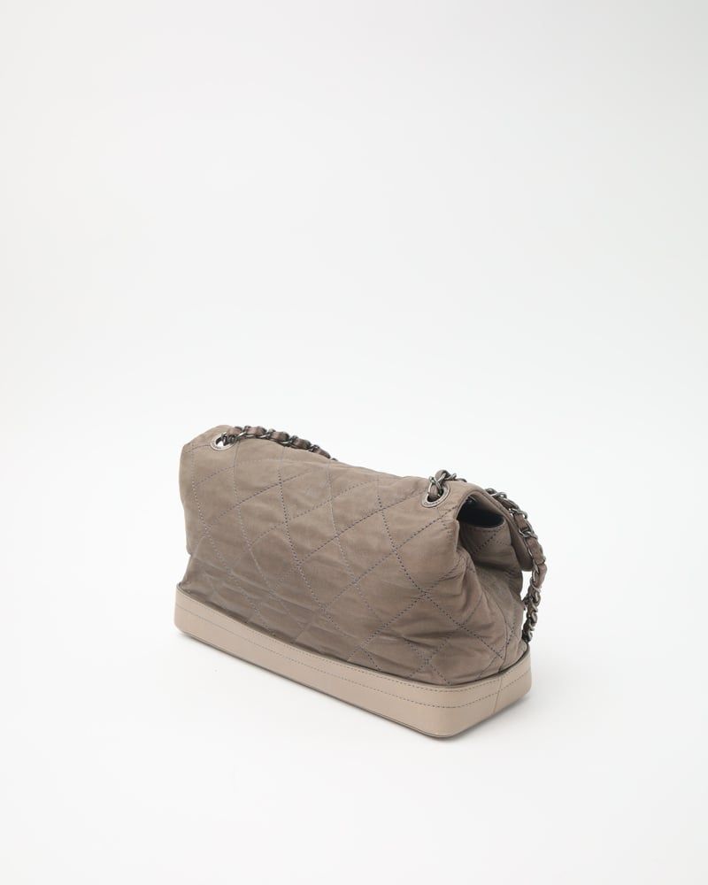CHANEL VIP Flap Bag- Gold-tone hardware- Grey quilted leather with glitter details- Adjustable chainlink crossbody strap- Black lining with one pocket- VintageOverall Preloved Condition: Very Good.Exterior Condition: Very Good. Marks and creases at bottom. Creases in the leather.Interior Condition: Very Good. Slight trace of use. Vintage smell.Hardware: Shiny with scratches.Delivered with Serial number tag.Made in ItalySerial number: 15******(2011)Dimensions:Height 17 cmWidth 31 cmDepth 4 cmShoulder strap drop 41 cmPlease note that the majority of our items are vintage and therefore have tales to tell unless stated otherwise. Therefore, please look at pictures, descriptions and measurements provided as they give you the best idea of the story this item has to tell.* Please note that when you buy a vintage product, the dimensions may vary slightly from a new one depending on previous care and storage.