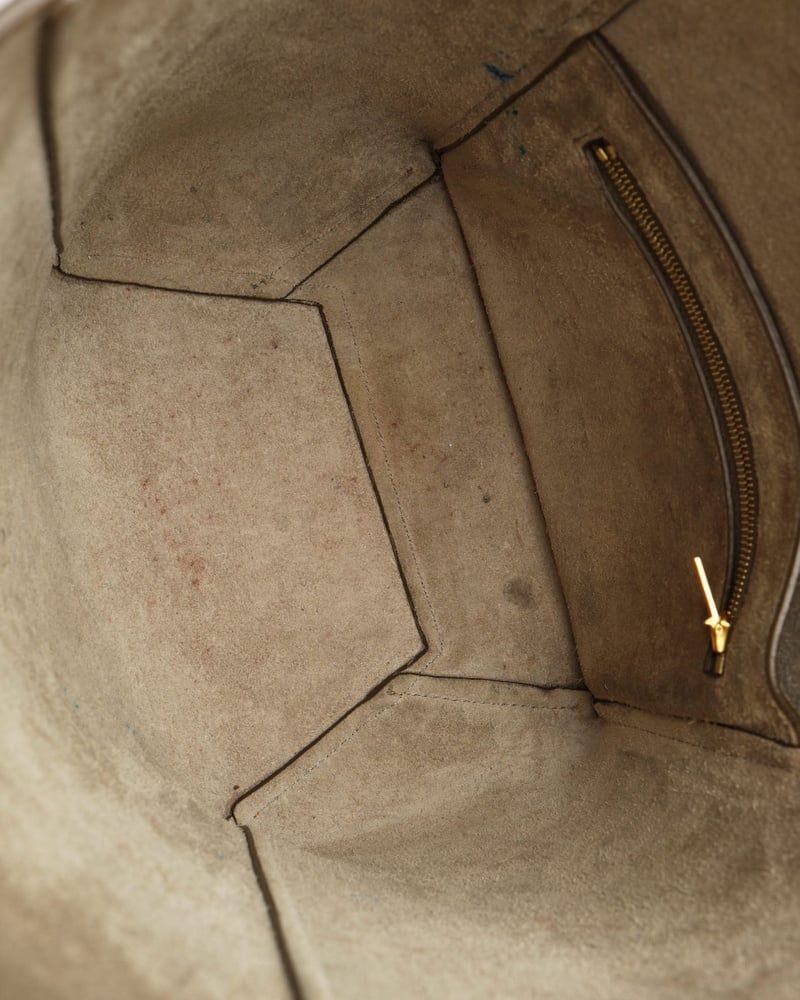 Celine Small Seau Sangle Bucket Bag- Gold-tone hardware- Beige leather- Flat shoulder strap- Tonal lining with two pockets- VintageOverall Preloved Condition: Very Good.Exterior Condition: Very Good. Scuffed corners. Light marks and scratches at leather.Interior Condition: Good. Marks throughout lining.Hardware: Shiny with scratches.Delivered with booklet, original receiptMade in ItalyDimensions:Height 24 cmWidth 18 cmDepth 12 cmShoulder strap drop 39 cmPlease note that the majority of our items are vintage and therefore have tales to tell unless stated otherwise. Therefore, please look at pictures, descriptions and measurements provided as they give you the best idea of the story this item has to tell.* Please note that when you buy a vintage product, the dimensions may vary slightly from a new one depending on previous care and storage.