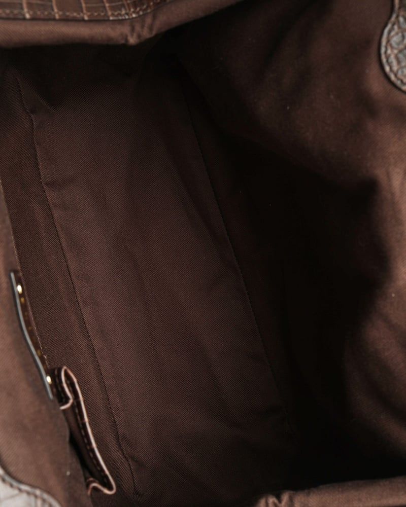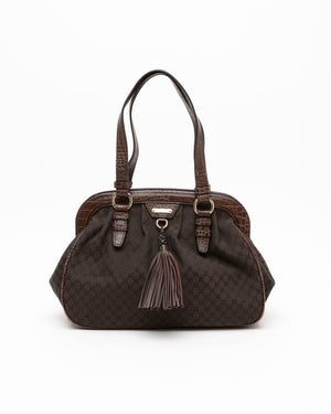 Celine Triomphe Croc Tassel Bag- Gold-tone hardware- Brown triomphe canvas- Dual handles- Tonal lining with two pockets- VintageOverall Preloved Condition: Very Good.Exterior Condition: Very Good. Scuffed leather trim. Light wear at handles.Interior Condition: Very Good. Light discoloration at lining.Hardware: Shiny with scratches.Delivered with dust bagMade in ChinaDimensions:Height 25 cmWidth 32 cmDepth 13 cmHandle drop 19 cmPlease note that the majority of our items are vintage and therefore have tales to tell unless stated otherwise. Therefore, please look at pictures, descriptions and measurements provided as they give you the best idea of the story this item has to tell.* Please note that when you buy a vintage product, the dimensions may vary slightly from a new one depending on previous care and storage.
