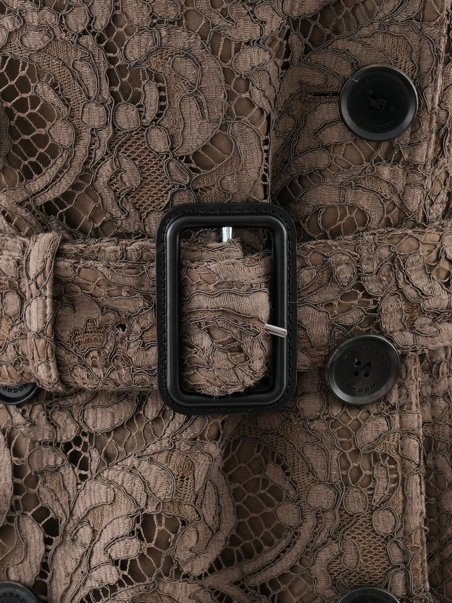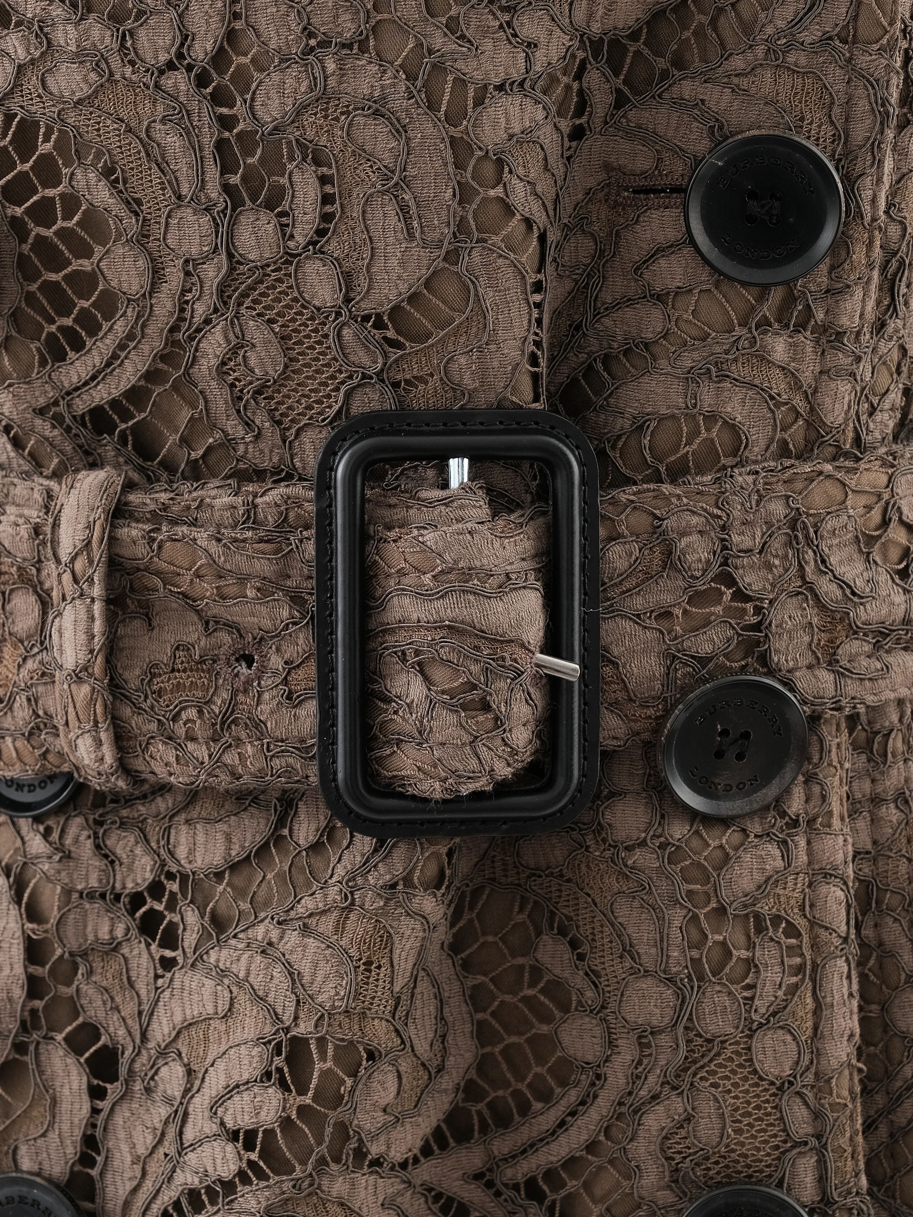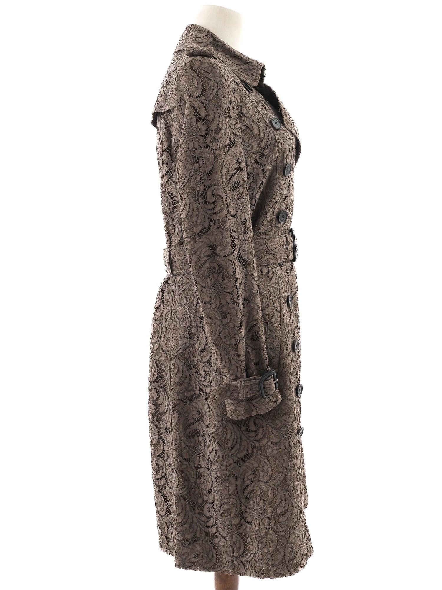Excellent Burberry Orange Lace Trench Coat Size L. This stunning Burberry trench coat is crafted from high-quality viscose, ensuring both comfort and durability. The vibrant orange color adds a striking touch to this classic design, making it perfect for fashion-forward individuals. Featuring a beautiful lace pattern, this double-breasted coat includes elegant button details and a stylish belt at the waist, allowing for a flattering silhouette. The coat is in excellent condition, with no flaws, and fits true to size - perfect for ladies' size Large. Detailed features include buttoned cuffs, a collared neckline, and intricate lace markings, showcasing the timeless craftsmanship that Burberry is known for. Ideal for transitional seasons, this coat can be dressed up or down, making it suitable for both casual outings and more formal occasions. Care instructions recommend dry cleaning to maintain the garment's quality and appearance. Experience the luxury of Burberry and elevate your wardrobe with this exquisite lace trench coat. Please message me to confirm shipping timeframe. My full-time job involves traveling often, and shipping out may take longer than usual. Thanks for your interest.