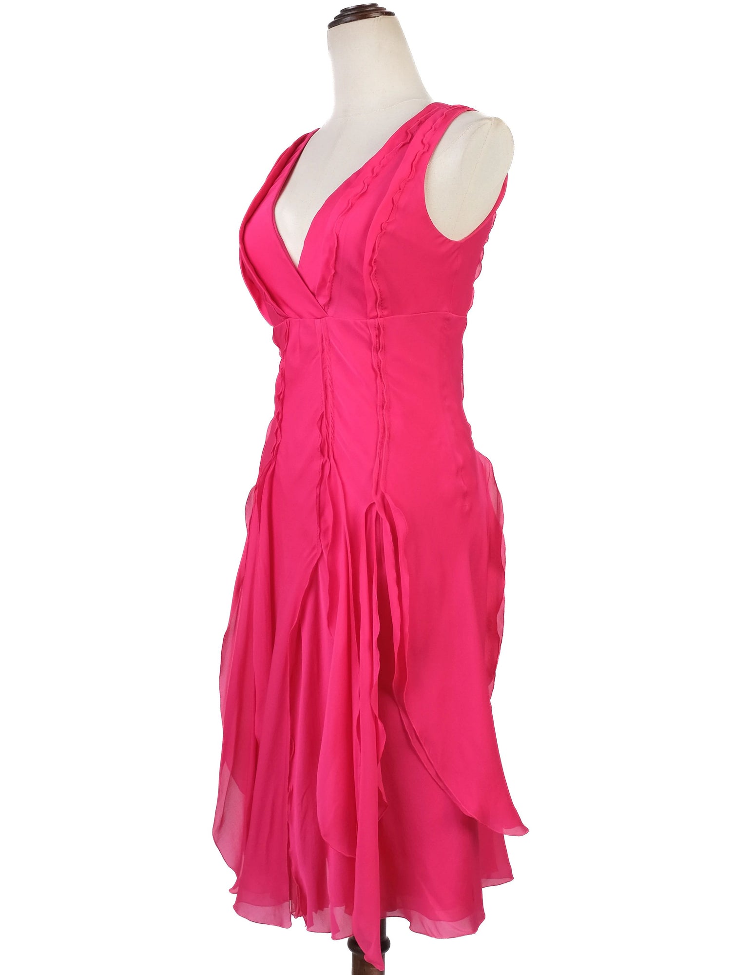 Excellent Celine Pink Silk Sleeveless Dress with Ruffled Skirt Discover this exquisite Celine dress, a stunning addition to any woman's wardrobe. This elegant sleeveless dress features a beautiful pink hue, perfect for a variety of occasions, from cocktail events to summer outings. The dress showcases a flattering V-neckline along with a fitted bodice that accentuates the silhouette. Crafted from high-quality silk, this dress boasts a flowing ruffled skirt that adds a romantic and graceful element to its design. It is an excellent condition piece with no visible flaws, ensuring a polished look for the discerning buyer. This silk dress is not only stylish but also comfortable, making it an ideal choice for anyone seeking sophistication without compromising on comfort. Dry cleaning is recommended to maintain its pristine condition. Additional care details: Dry clean only. A perfect fit for those who appreciate luxury and elegance in their fashion choices. Add this Celine dress to your collection and elevate your wardrobe with its unique charm. Please message me to confirm shipping timeframe. My full-time job involves traveling often, and shipping out may take longer than usual. Thanks for your interest.