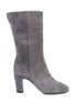 Excellent Chanel Gray Leather Boots Size 38 with Stylish Mid-Heel