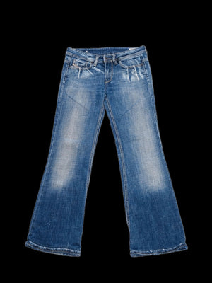 Excellent Diesel Blue Cotton Flare Jeans Size S Distressed Style