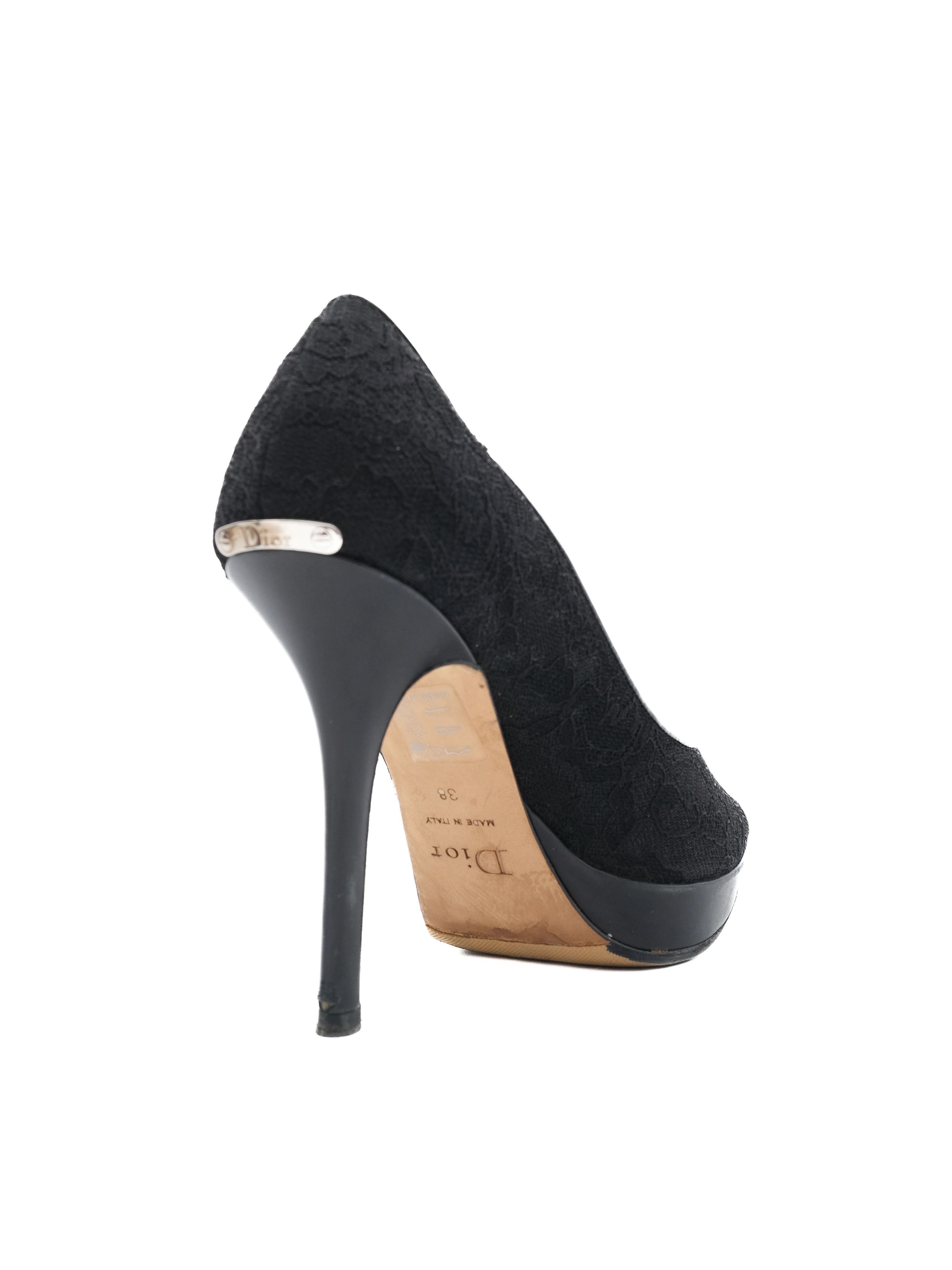 Excellent Dior Black Lace High-Heeled Shoes Size 38