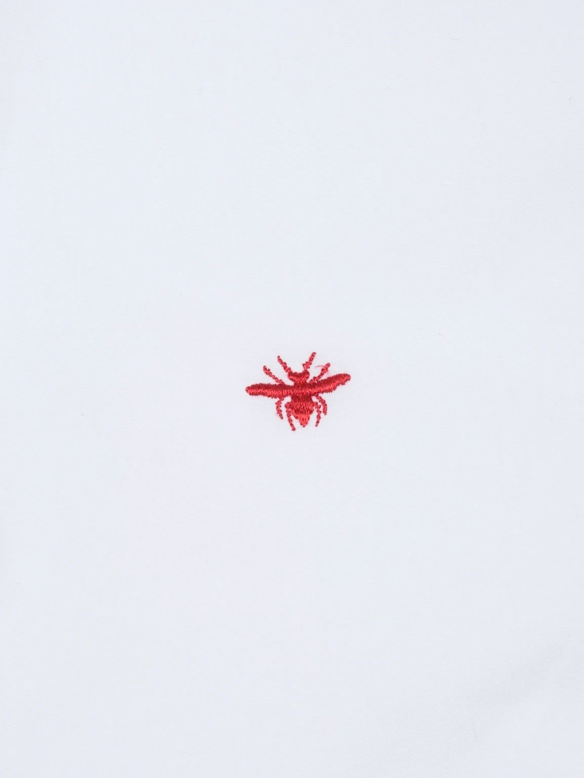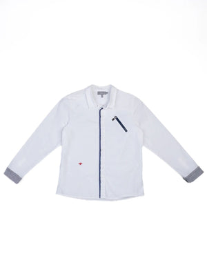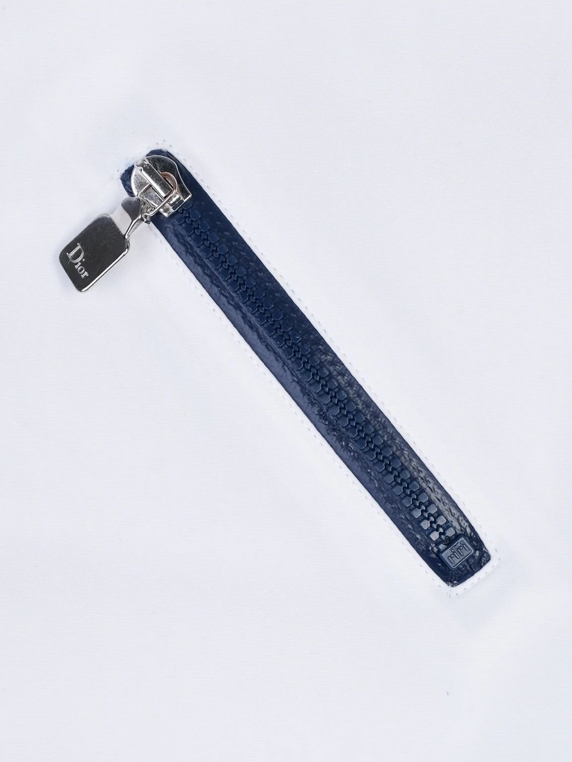 Excellent Dior White Cotton Long Sleeve Shirt for Kids Size 10. This stylish shirt is in excellent condition with no flaws and fits true to size. Crafted from high-quality natural cotton, it features a clean and modern design that is perfect for casual outings. The shirt showcases a dark zipper pocket on the chest with a distinctive zip pull tag that says 'Dior', adding a touch of luxury. A small red embroidered motif resembling a bee on the front adds an eye-catching detail. The back of the shirt is plain, maintaining a sleek look. Additionally, the contrasting dark cuffs complement the overall design beautifully. Care instructions: Machine wash only. Size 10 is ideal for growing kids, ensuring comfort and style. This shirt is perfect for everyday wear or special occasions, offering both durability and fashion-forward design. The smoke-free and pet-free environment assures cleanliness and quality. Don't miss the chance to own this exquisite piece by Dior for your child! Please message me to confirm shipping timeframe. My full-time job involves traveling often, and shipping out may take longer than usual. Thanks for your interest.