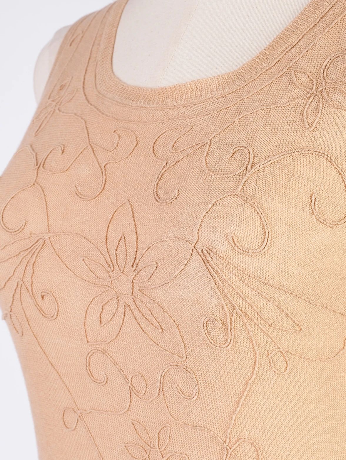 Excellent DKNY Floral Embroidered Orange Cotton Sleeveless Shirt S