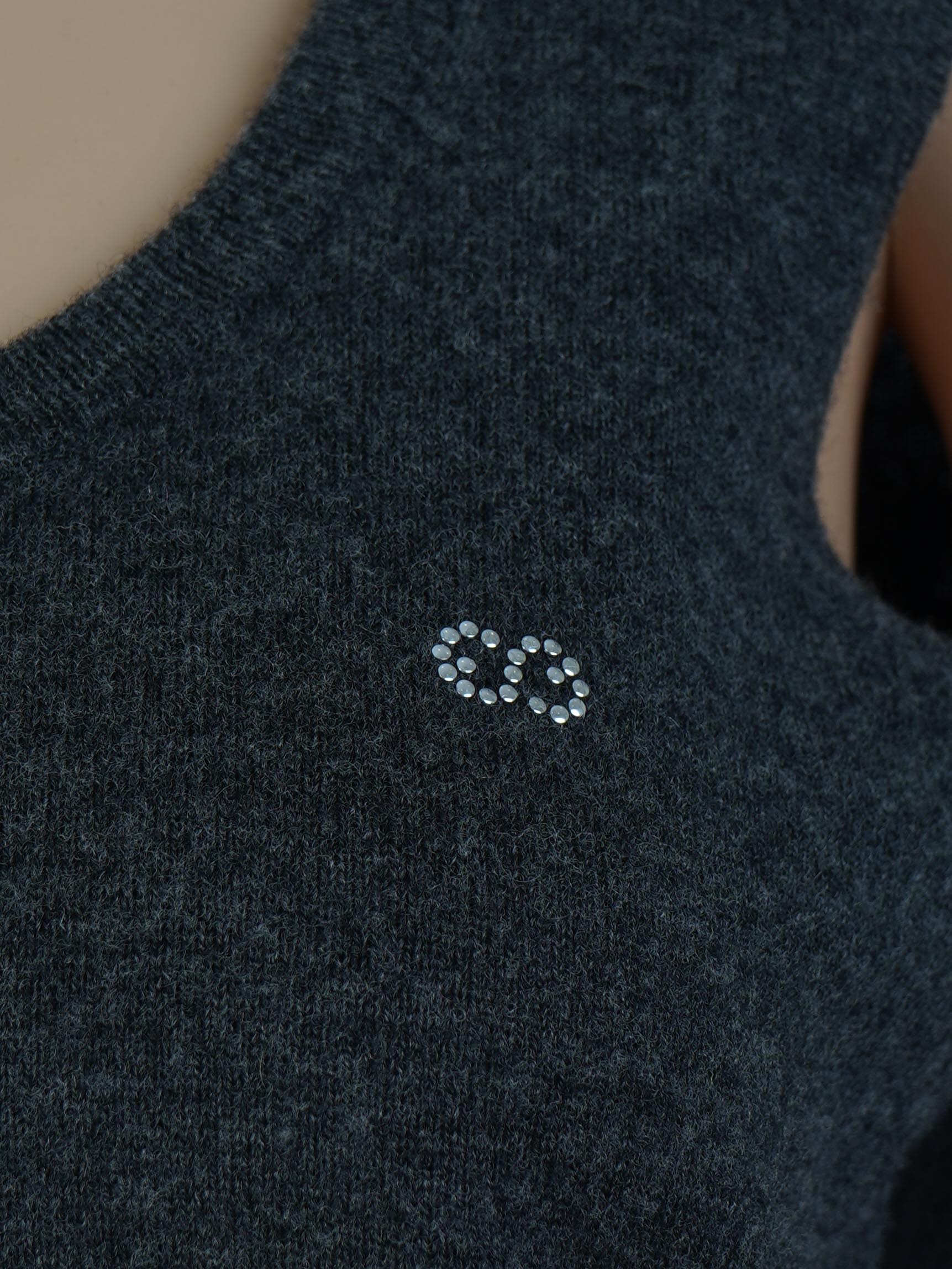 The top is adorned with a small decorative logo on the chest, adding a touch of elegance to the design. Ideal for layering or wearing on its own, it pairs well with jeans, skirts, or tailored trousers for a semi-casual look.