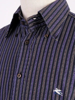 Excellent Etro Striped Button-Up Shirt Purple Cotton Size L