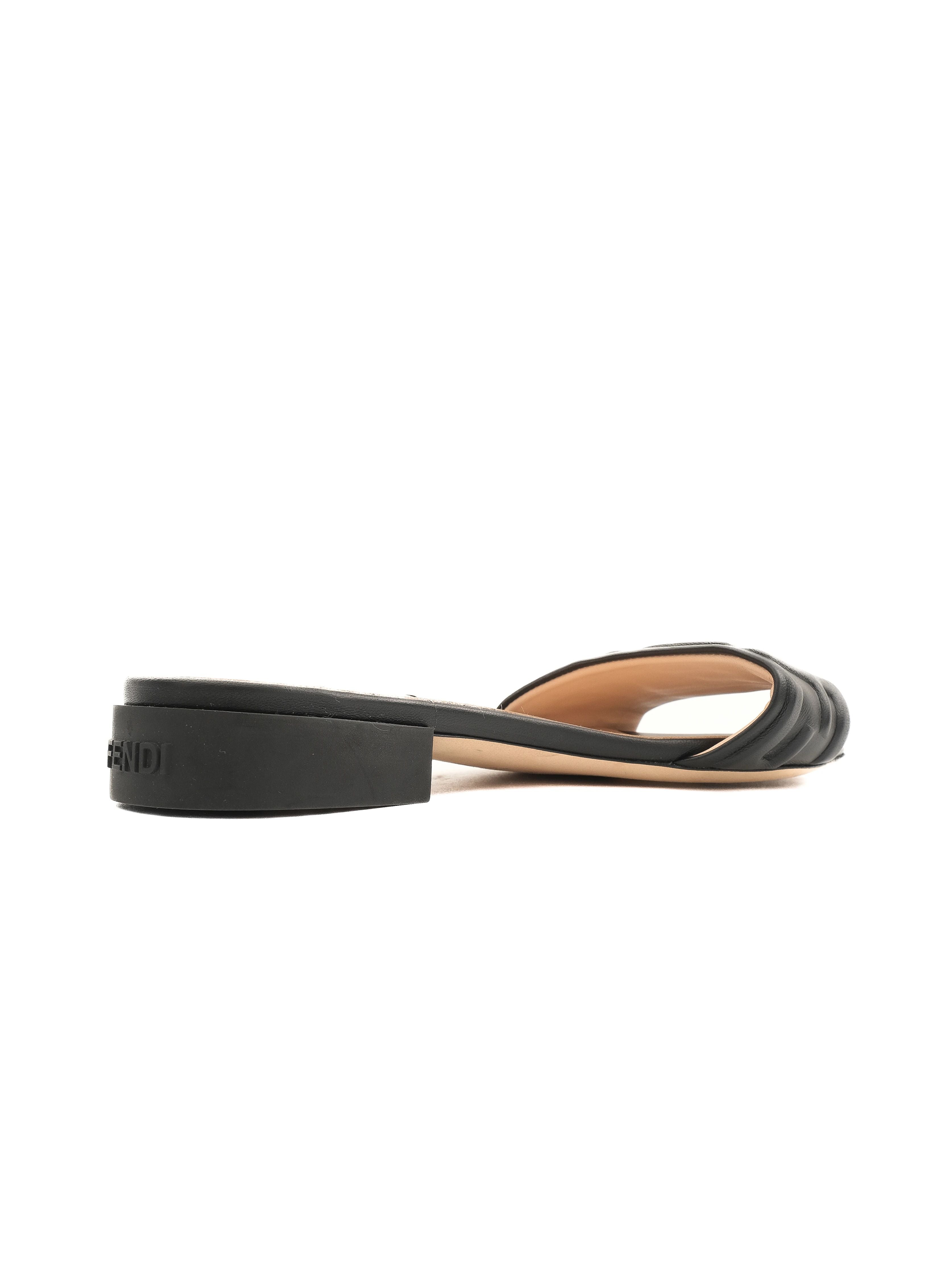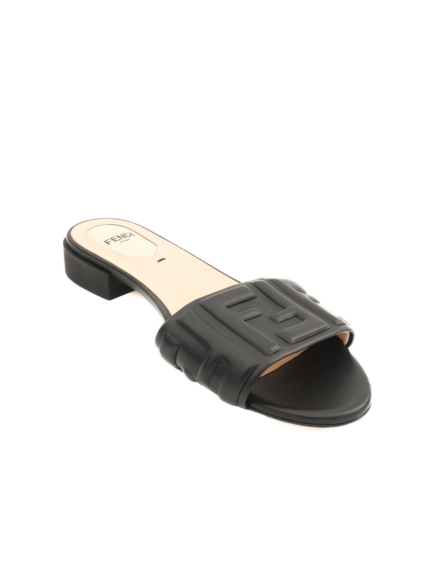 Excellent Fendi Black Leather Slide Sandals Size 37 with Embossed Design