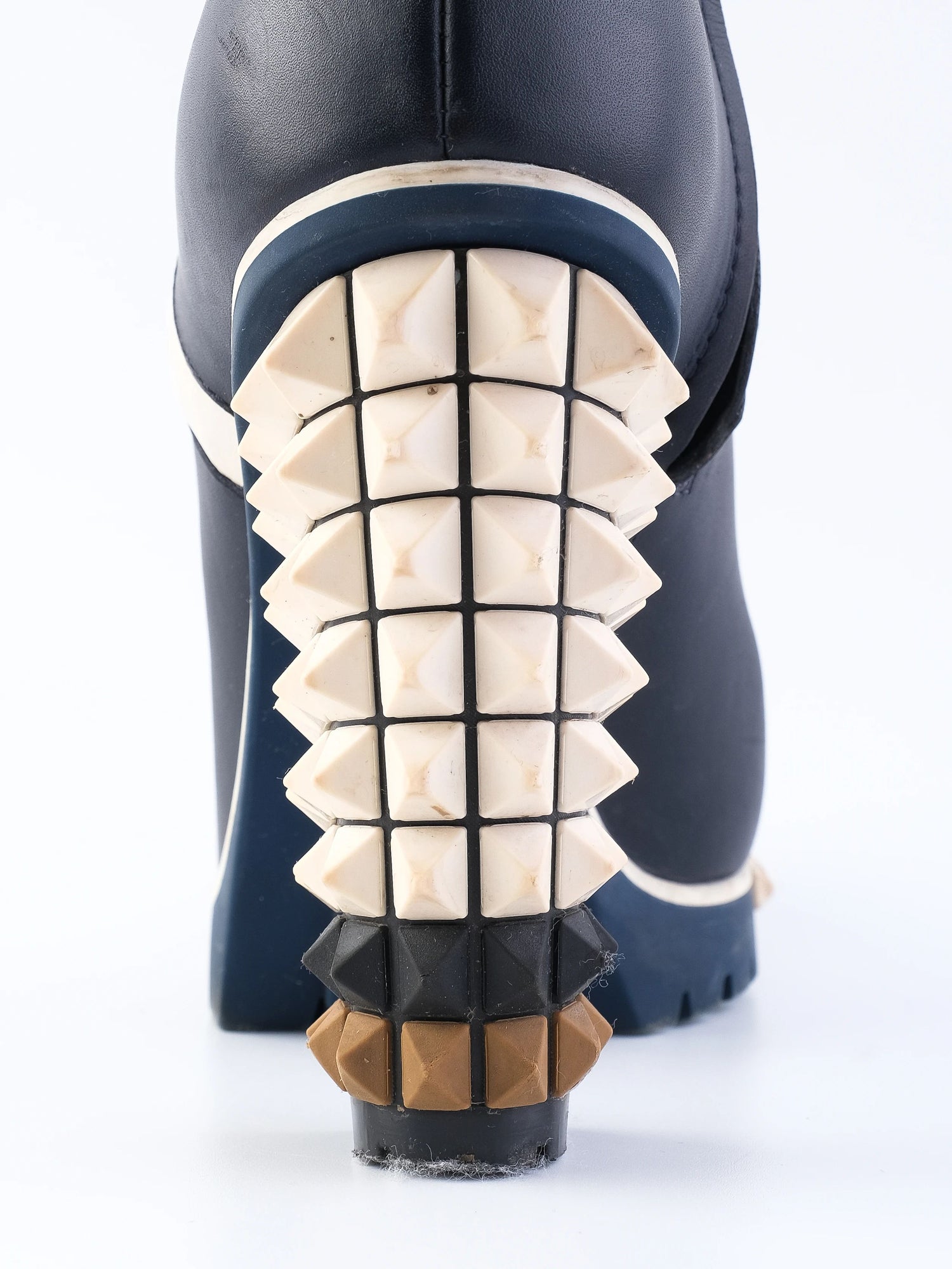 Excellent Fendi Blue Leather Ankle Boots Size 38 with Unique Design These stylish ankle boots from Fendi feature a vibrant blue leather that stands out in any wardrobe. In excellent condition, these boots showcase a unique design with a decorative buckle on the side and an eye-catching heel adorned with pyramid-shaped studs in contrasting white, black, and brown tones. Designed for women, these ankle boots are not just fashionable but also functional with a rugged sole for added durability and grip. The upper is crafted from high-quality leather, ensuring both comfort and longevity. The size 38 fits true to size, making these boots a versatile addition to your collection. Care instructions recommend using a leather cleaner for maintenance, preserving the beautiful finish of the leather. With their distinct style elements and premium materials, these Fendi ankle boots are perfect for any semi-casual or evening occasion. Experience the luxury of Fendi with these exceptional ankle boots, ideal for elevating your ensemble while providing the comfort you demand. Please message me to confirm shipping timeframe. My full-time job involves traveling often, and shipping out may take longer than usual. Thanks for your interest.