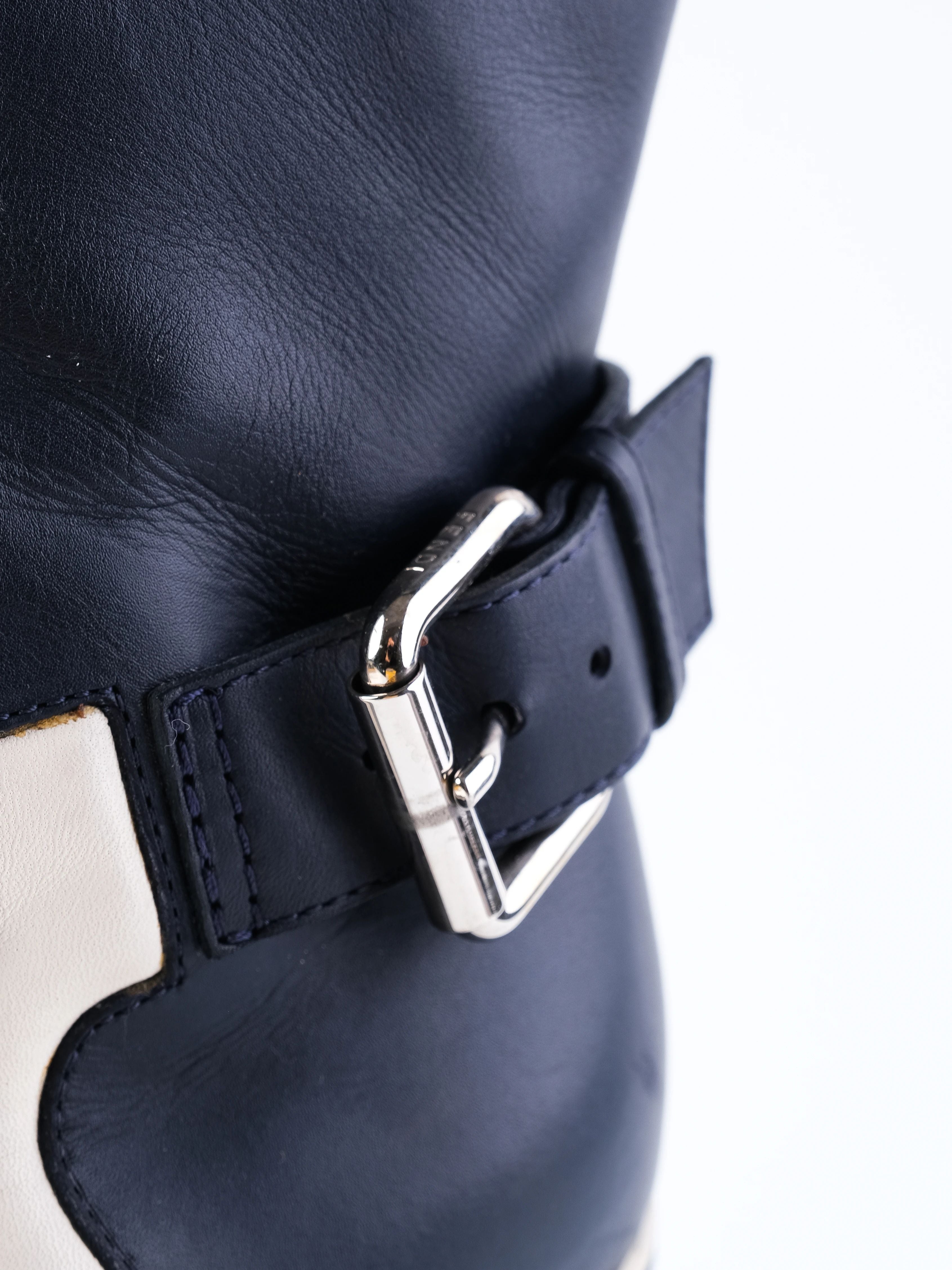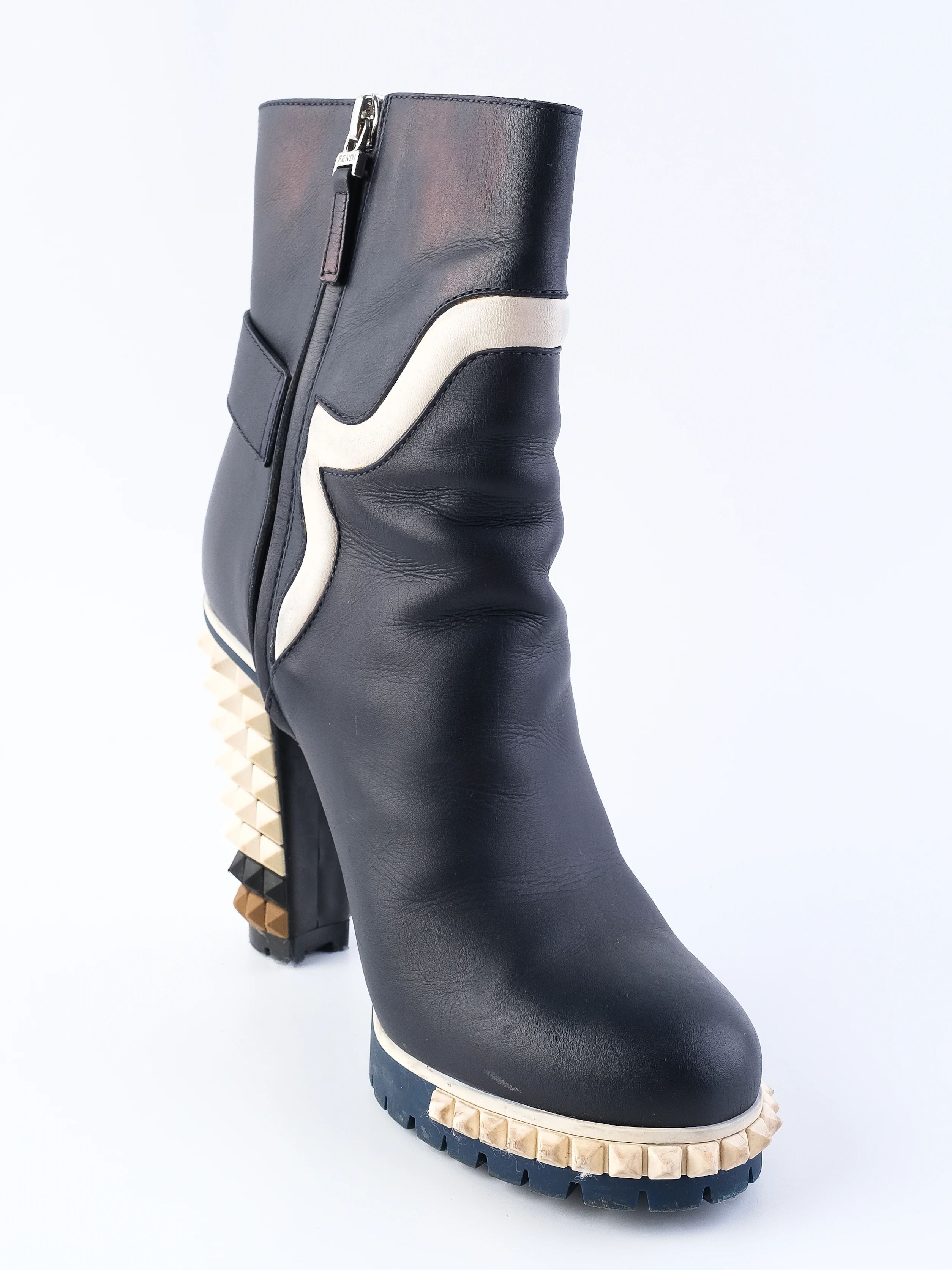 Excellent Fendi Blue Leather Ankle Boots Size 38 with Unique Design