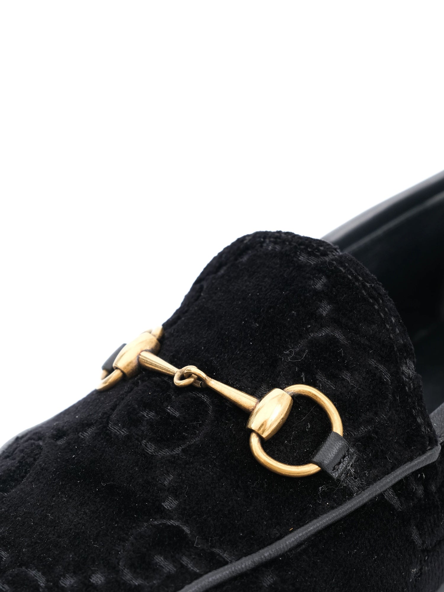 Excellent Gucci Black Genuine Suede Loafers Size 38 with Gold Bit Detail