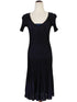Excellent Kenzo Blue Viscose Dress Size M with Flared Skirt. This beautiful navy blue dress by Kenzo is in excellent condition, featuring a flattering knee-length cut with a flared skirt. The short sleeves and vertical stripes enhance its silhouette, making it a perfect choice for various occasions including semi-casual outings or cocktail events. The dress is crafted from high-quality viscose, ensuring a comfortable fit and a stylish drape. It is designed to fit true to size, making it a great addition to your wardrobe. Care instructions recommend dry cleaning to maintain its pristine condition. Ideal for a smoke-free and pet-free home, this piece is a stylish option for those looking to elevate their fashion game with designer apparel. Don't miss the chance to own this statement dress by Kenzo, perfect for stylish women who appreciate elegance and quality in their clothing. Please message me to confirm shipping timeframe. My full-time job involves traveling often, and shipping out may take longer than usual. Thanks for your interest.