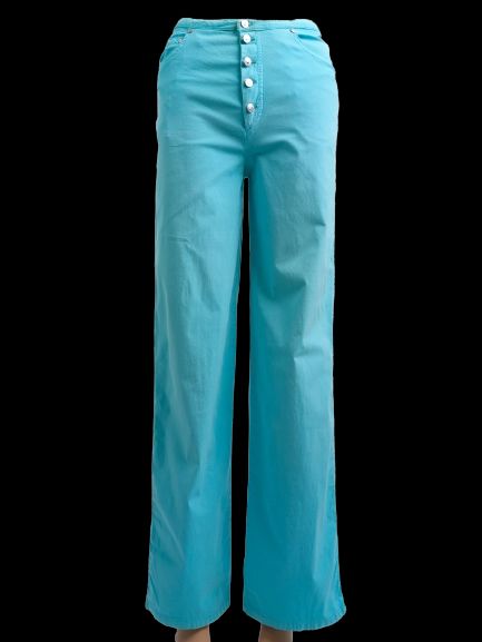 These stylish blue wide-leg pants from Kenzo are in excellent condition, featuring no flaws and a fit that conforms true to size. The pants come with a button closure at the front and convenient pockets at the back, blending functionality with fashion.
