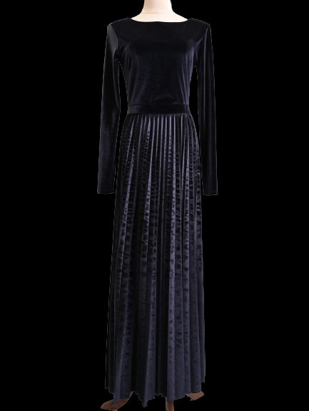 This stunning long dress by MaxCo is crafted from luxurious blue velvet, embodying elegance in every stitch. Designed for women, it features long sleeves and a simple yet sophisticated silhouette, making it perfect for a variety of occasions, from cocktail events to evening galas.