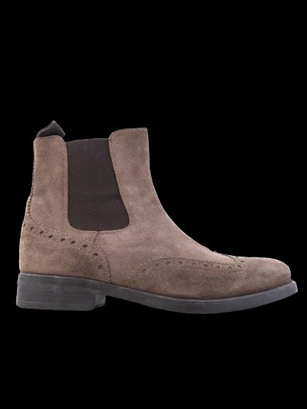 Excellent Pollini Green Leather Chelsea Boots Size 36 with Brogue Detail