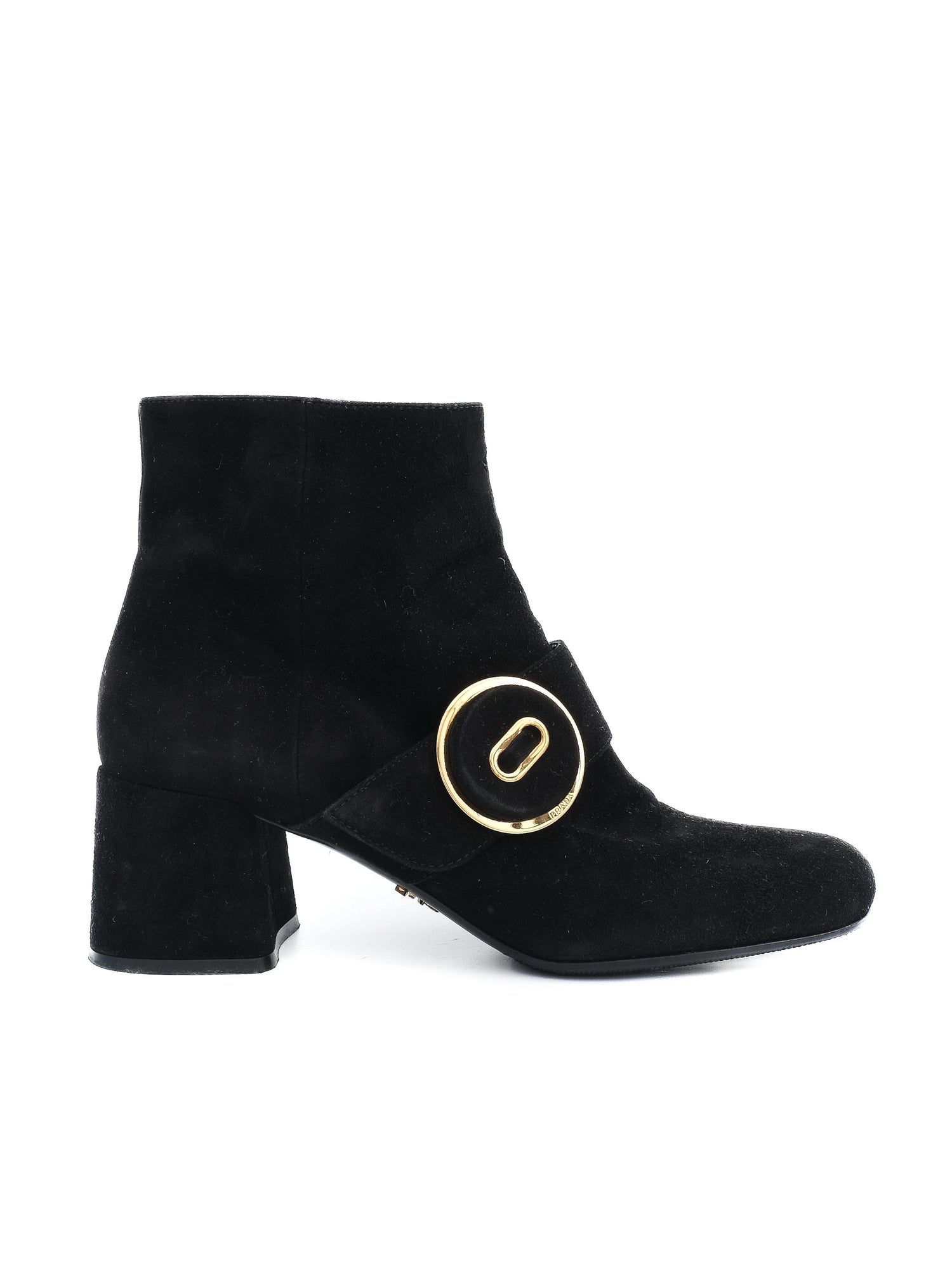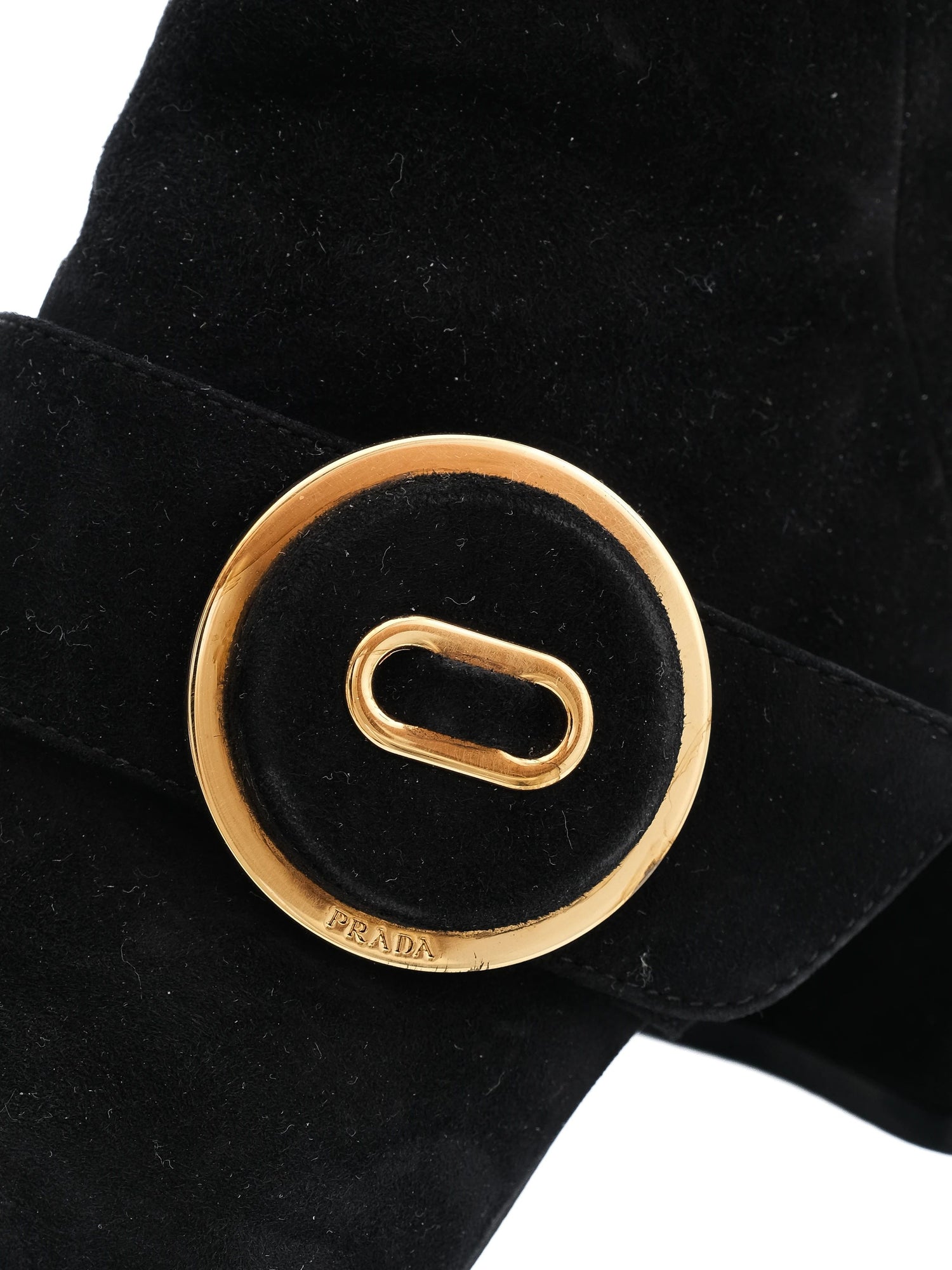 Excellent Prada Black Genuine Suede Ankle Boots Size 36.5