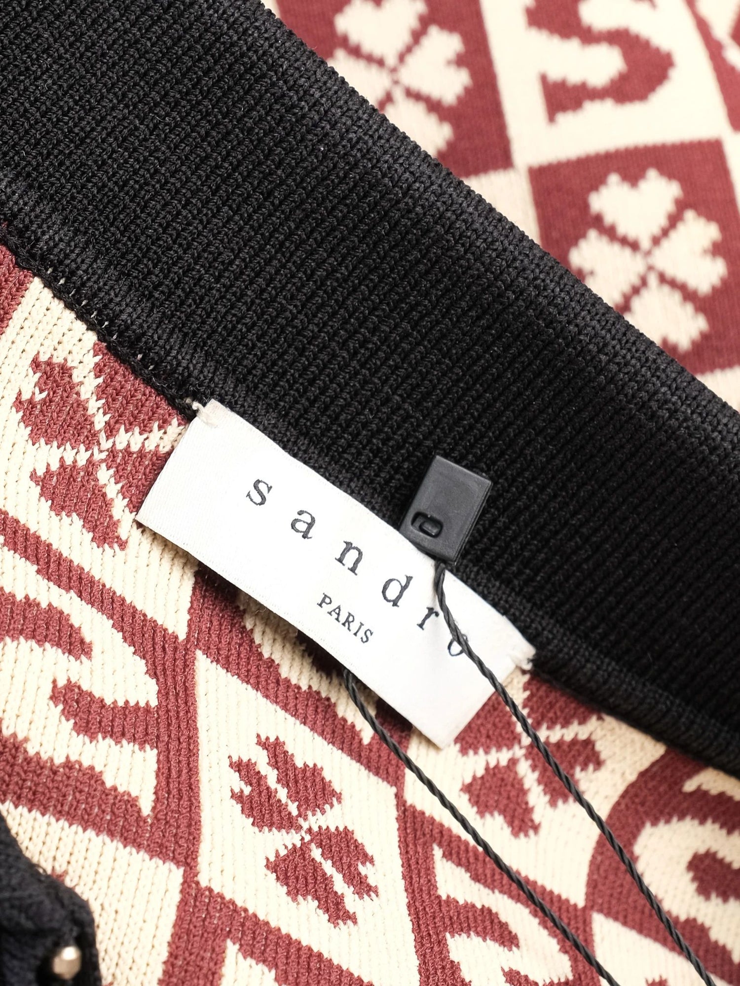 Excellent Sandro Sleeveless Dress Red Floral Pattern Size S This stunning sleeveless dress by Sandro is in excellent condition with no flaws and fits true to size. The dress features a unique repeating pattern of squares, each adorned with a stylized letter 'S' or a floral motif, creating an eye-catching design in shades of red and white. It is complemented by a black collar and black trim around the armholes, along with a convenient zipper down the front. The fabric is made of soft, breathable viscose, ensuring comfort while maintaining a stylish silhouette. This dress is perfect for various occasions, from casual outings to semi-casual events. Approximate measurements: Body length: 36" (measured from shoulder to hem). Size: Small (S). Care instructions: Dry clean only. This dress is perfect for women looking to add a vibrant and elegant piece to their wardrobe. It comes from a smoke-free and pet-free home, ensuring it arrives in pristine condition for its new owner. Please message me to confirm shipping timeframe. My full-time job involves traveling often, and shipping out may take longer than usual. Thanks for your interest.