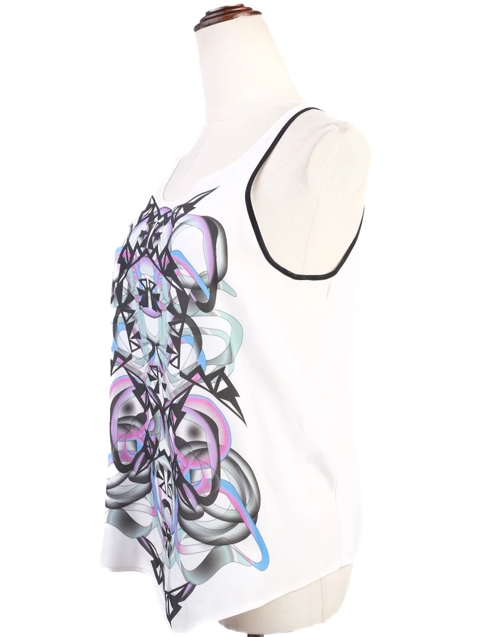 Excellent Sandro White Silk Sleeveless Top XS Abstract Design