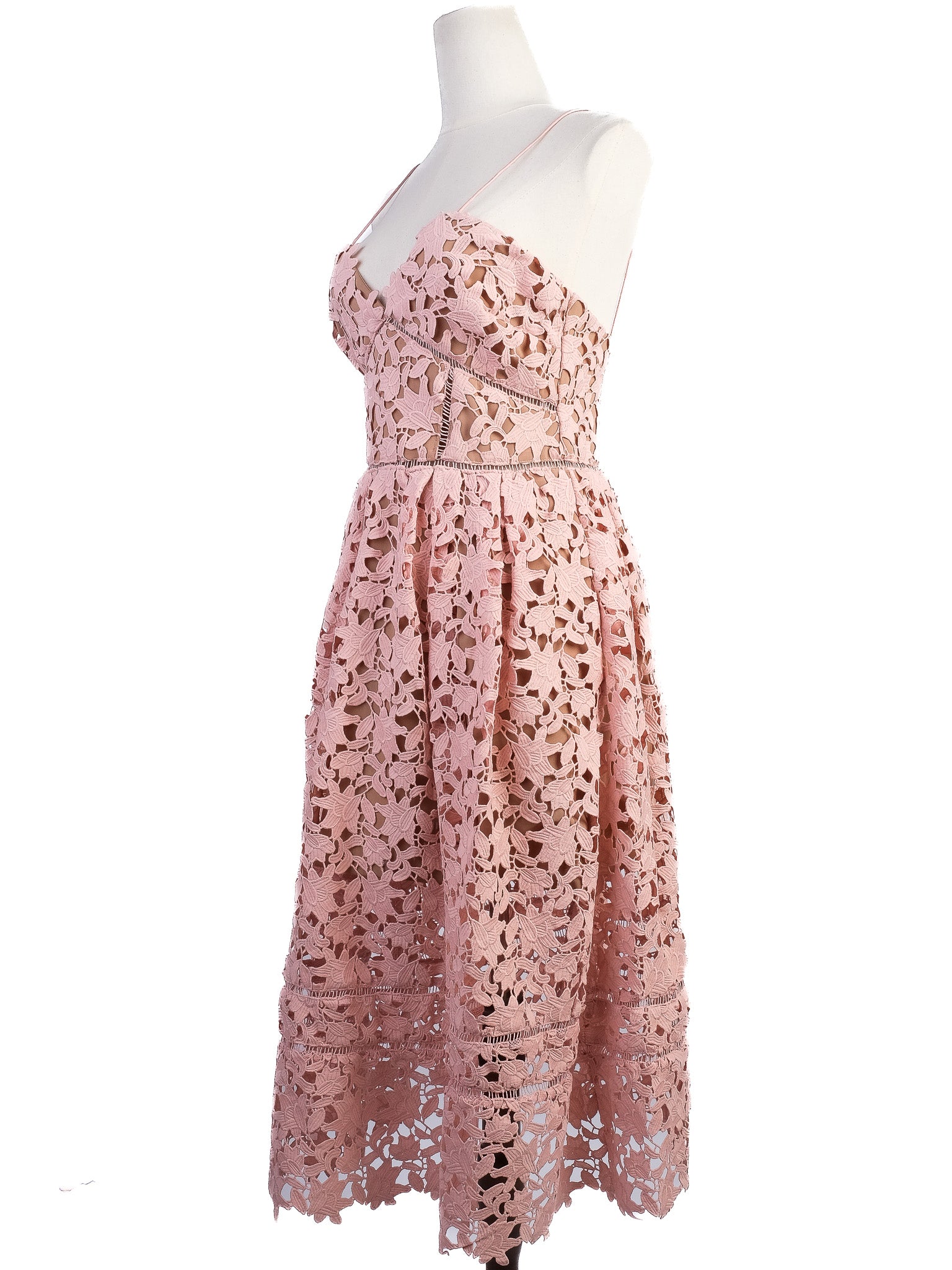 Excellent Self-Portrait Pink Lace Dress Floral Cut-Out Size N/A