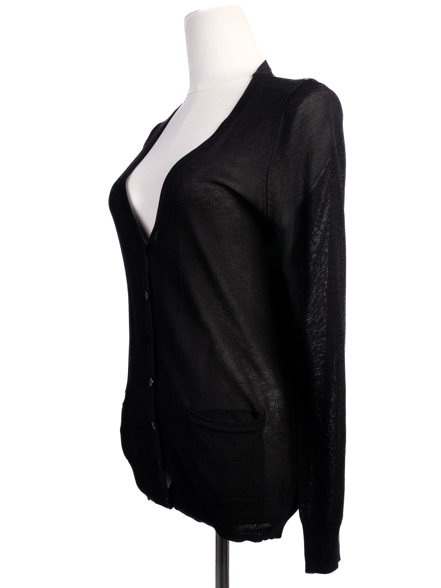This exquisite Valentino cardigan is a must-have for your wardrobe. Crafted from high-quality silk, it boasts a sophisticated black color that is versatile for various occasions. The size M fits true to size, ensuring a comfortable and flattering fit.