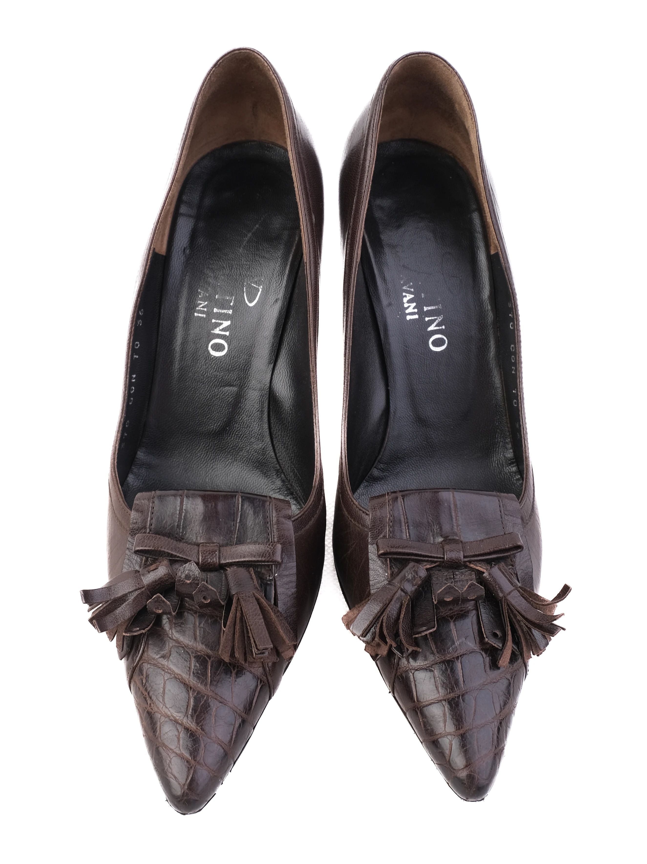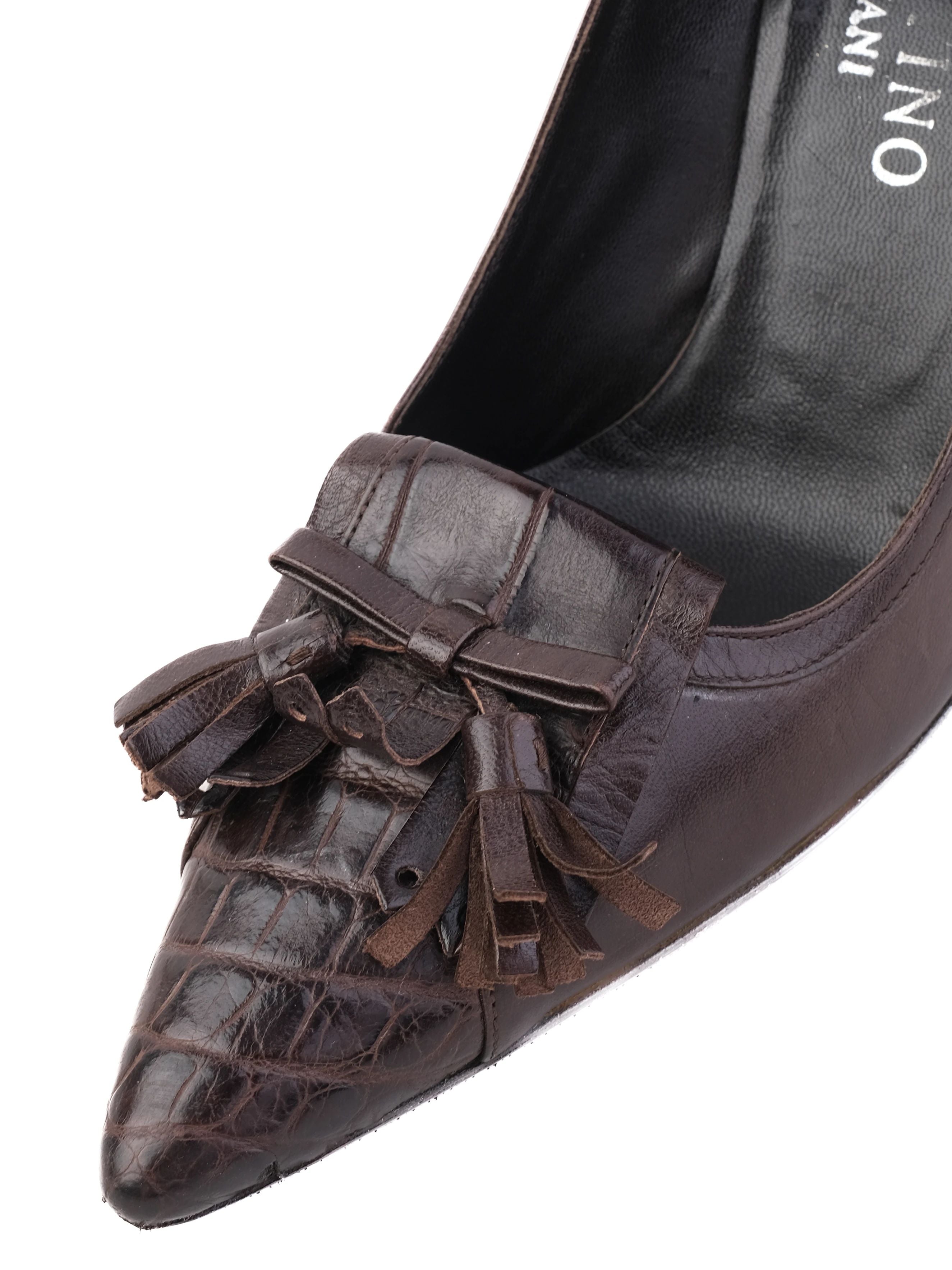 Excellent Valentino Orange Leather Stiletto Heels Size 36 These elegant high-heeled shoes by Valentino are an exquisite addition to any woman's wardrobe. Crafted from genuine leather, these stunning heels feature a vibrant orange color that is sure to make a statement. The pointed toe design is enhanced by decorative tassels, adding a unique touch to the overall appearance. The glossy finish gives these shoes a sophisticated look, while the stiletto heel provides both height and elegance. In excellent condition, these shoes have been well-cared for and show minimal signs of wear. They fit true to size (36) and are perfect for both formal and semi-formal occasions. The timeless design makes them suitable for various events, whether itÕs a cocktail party or a night out. The closure type for these heels is standard, ensuring a secure fit. To maintain their beauty, it's recommended to use leather cleaner for spot cleaning. Make a bold fashion statement with these Valentino stiletto heels that combine style, comfort, and luxury. Please message me to confirm shipping timeframe. My full-time job involves traveling often, and shipping out may take longer than usual. Thanks for your interest.