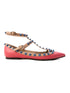 Excellent Valentino Pink Leather Flat Shoes with Blue Studs