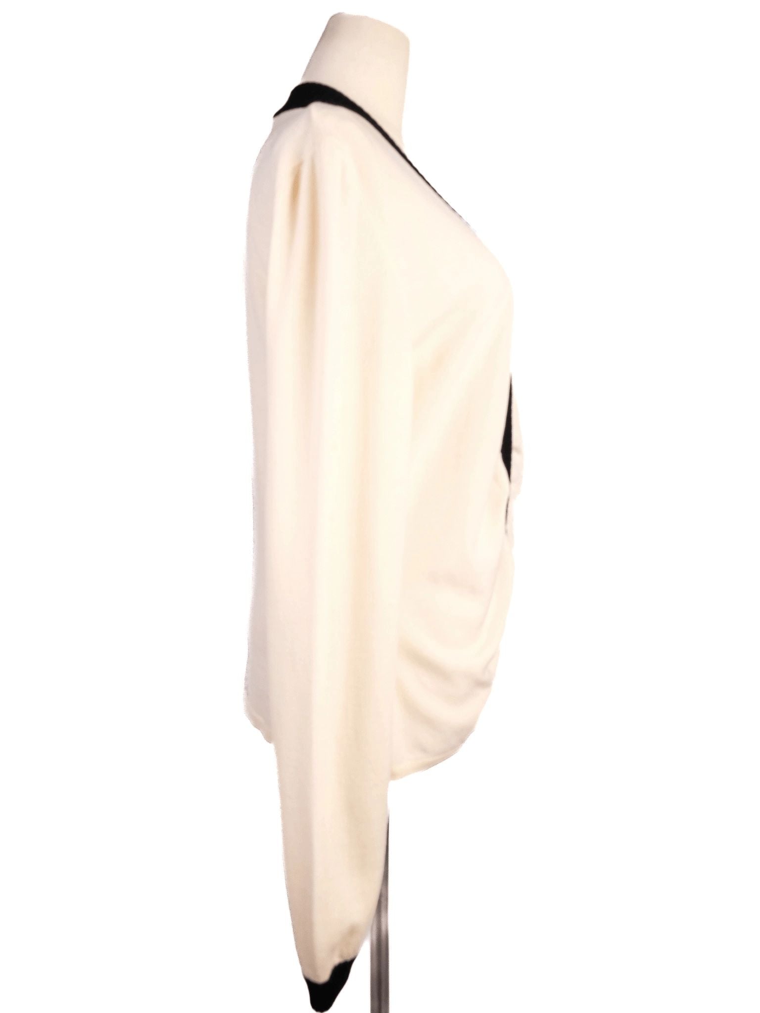 Excellent Valentino White Wool Cardigan Size M with Black Trim