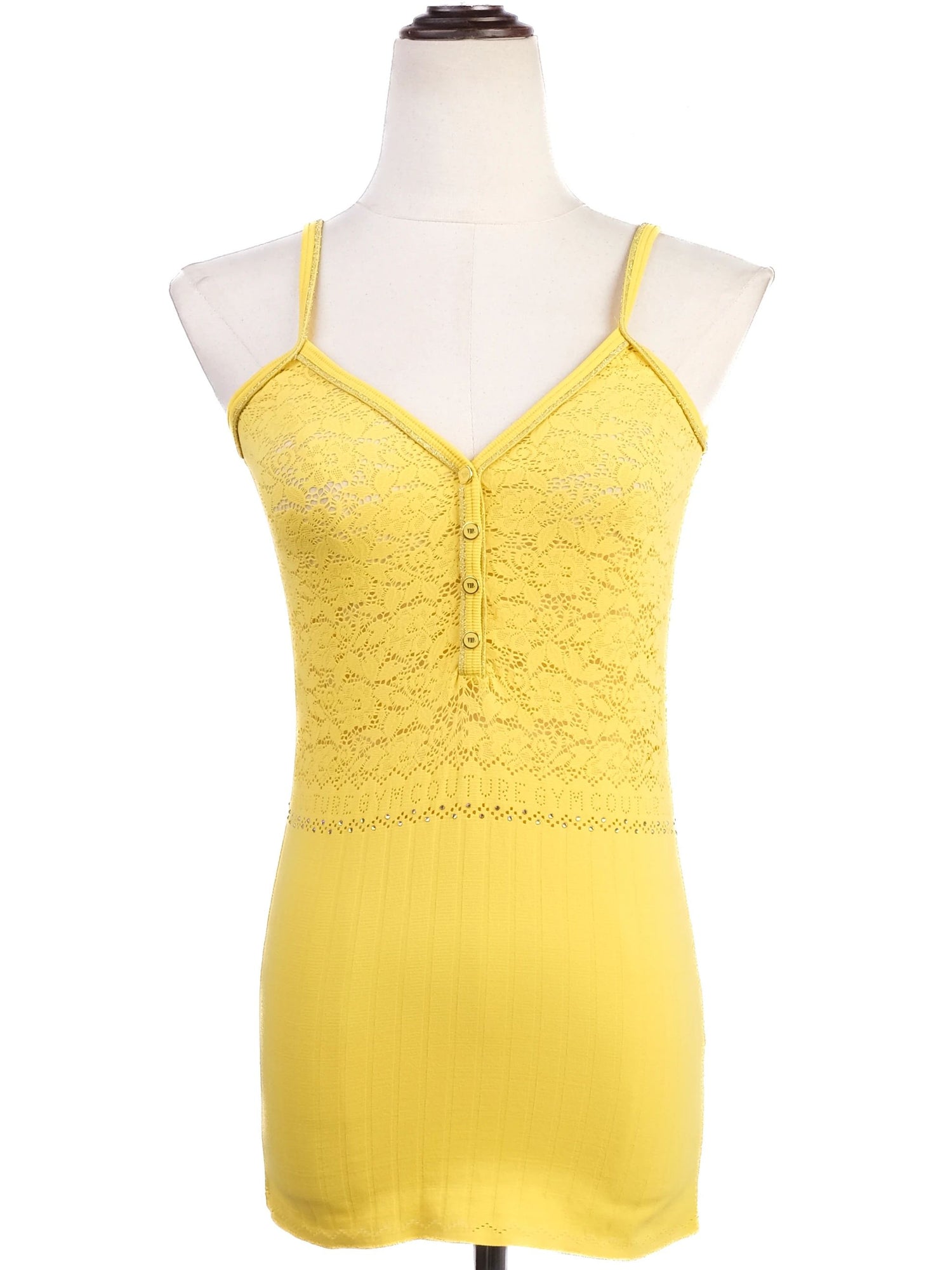 Excellent VDP Yellow Lace Camisole Top Size M Women This charming yellow lace camisole from VDP is designed for women seeking style and comfort. The exquisite lace features detailed floral patterns, adding a touch of elegance to any outfit. The top comes in a medium size and is perfect for layering or wearing on its own for a chic look. Condition is excellent, with no flaws, and it fits true to size. The camisole features thin straps that ensure a comfortable fit, along with decorative buttons running down the front for added visual interest. Crafted from quality nylon, it is lightweight and breathable, making it an ideal choice for warm weather. It is suitable for various occasions, from casual outings to semi-casual gatherings. Care instructions recommend hand washing to maintain the fabric's integrity. Choose this stunning piece to elevate your wardrobe with a touch of sophistication and style. Designed in a smoke-free and pet-free environment for added peace of mind. Please message me to confirm shipping timeframe. My full-time job involves traveling often, and shipping out may take longer than usual. Thanks for your interest.