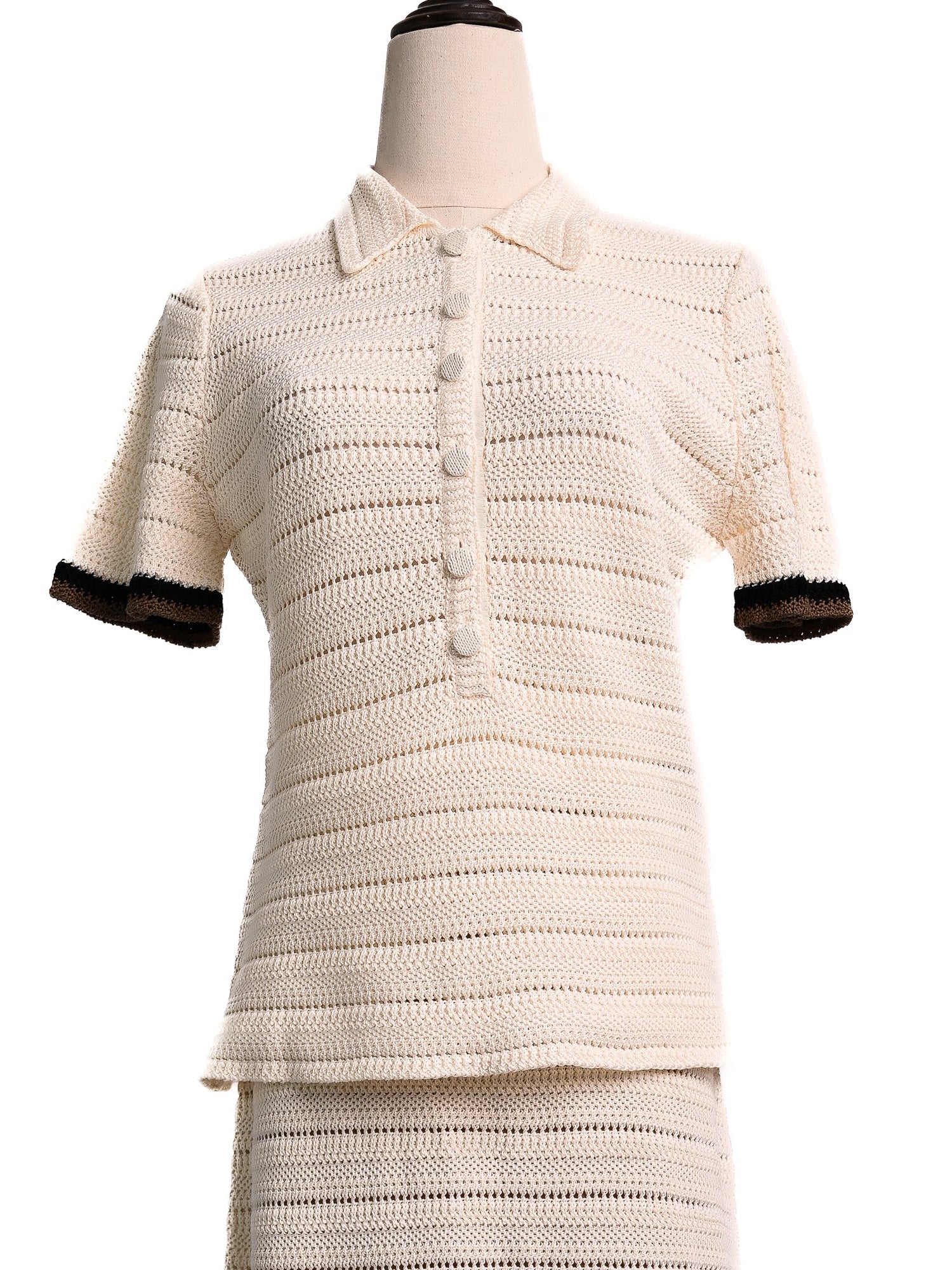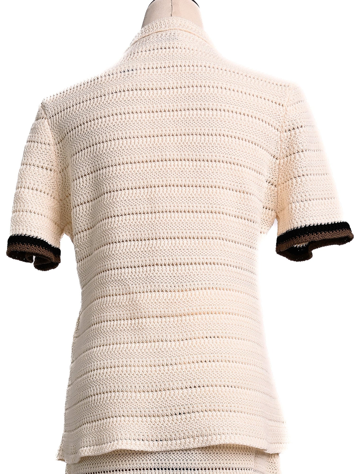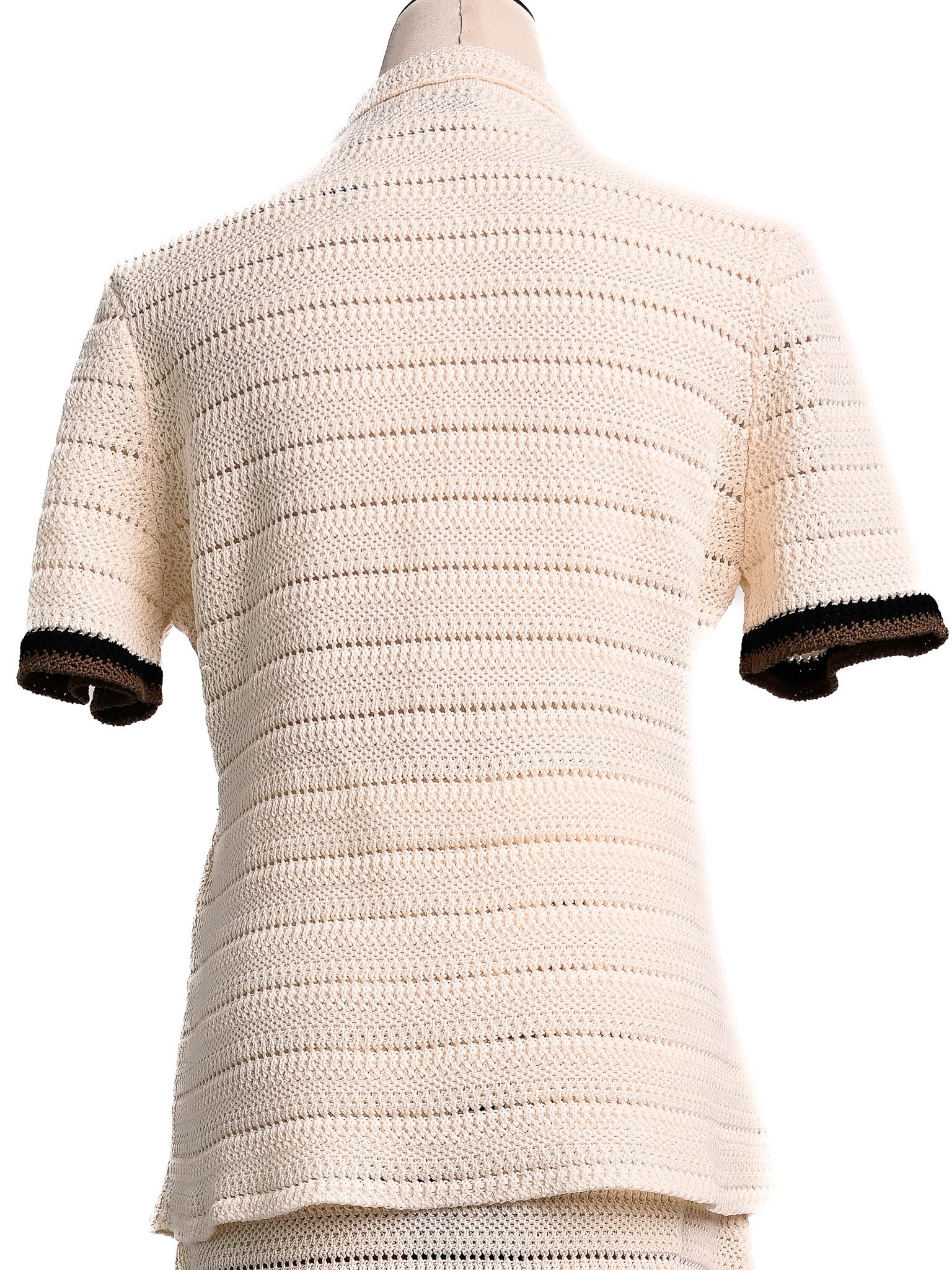 Fendi White Cotton Knitted Top Size M with Black Trim