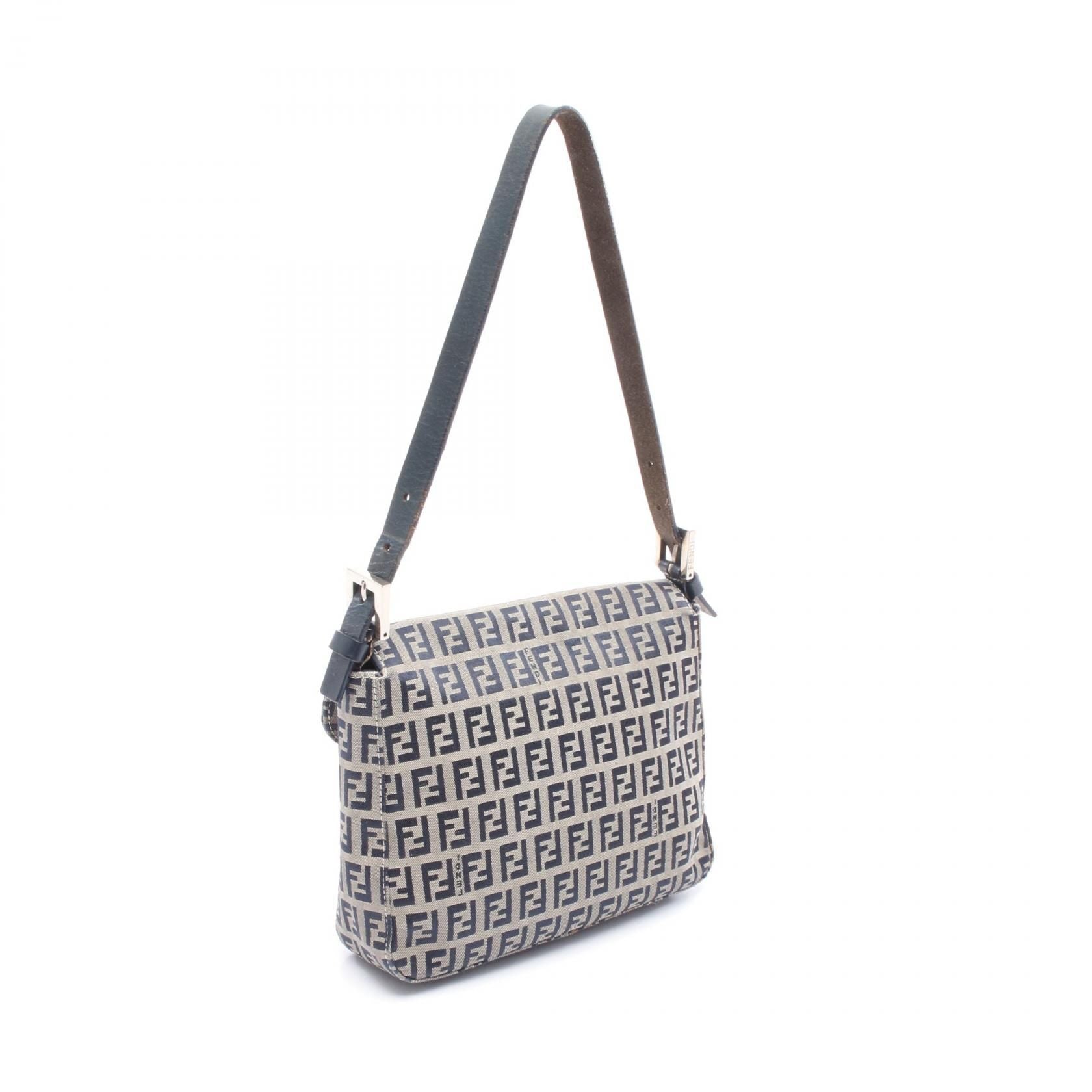 Fendi Zucchino Handbag Navy Gray Canvas 16464