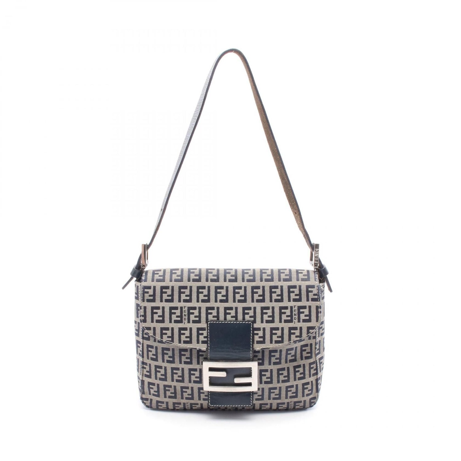Item Name: FENDI Zucchino Handbag Navy Gray canvas leather 16464