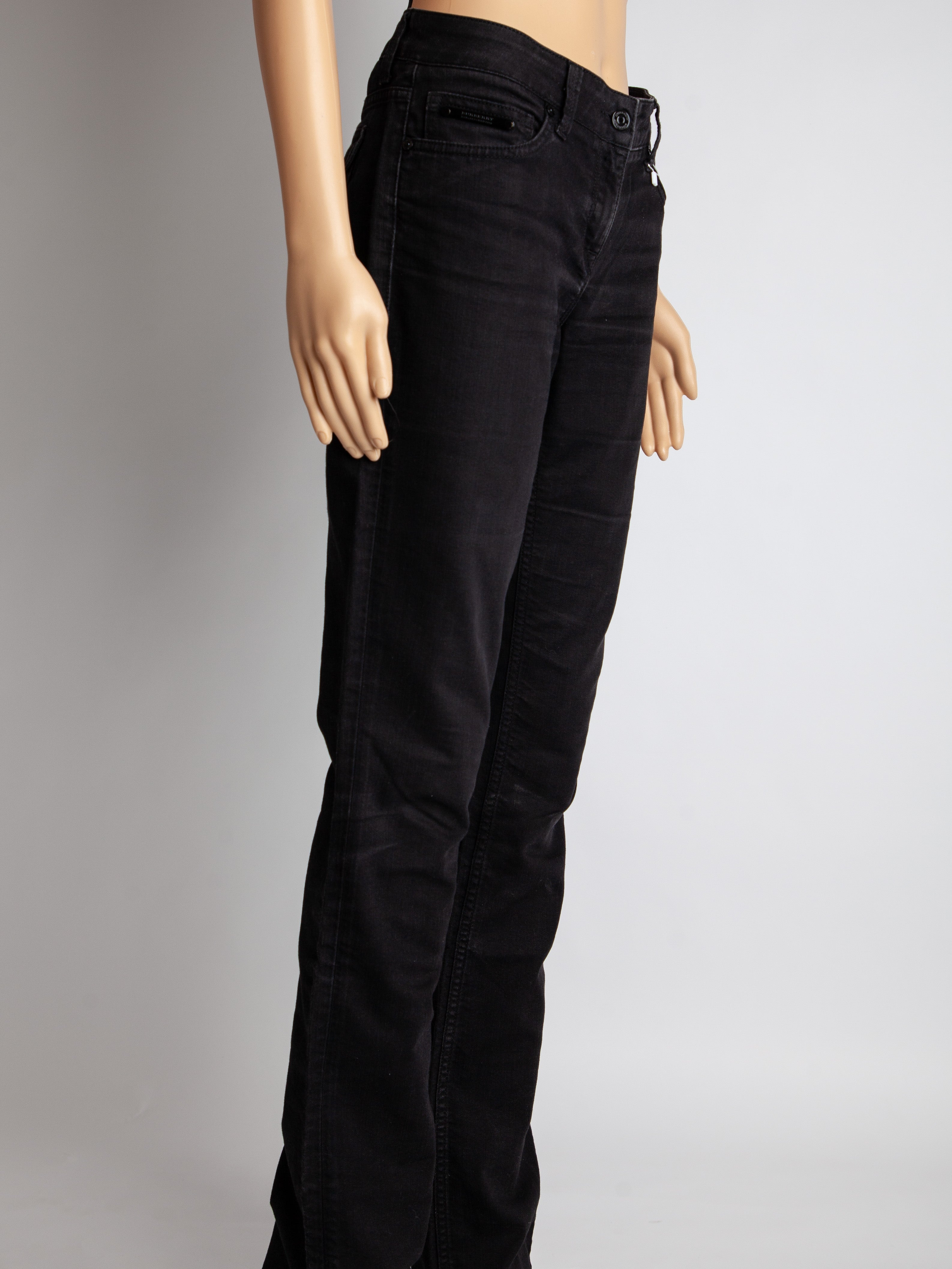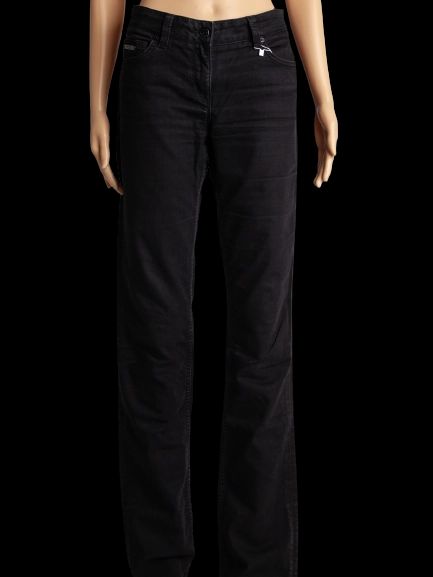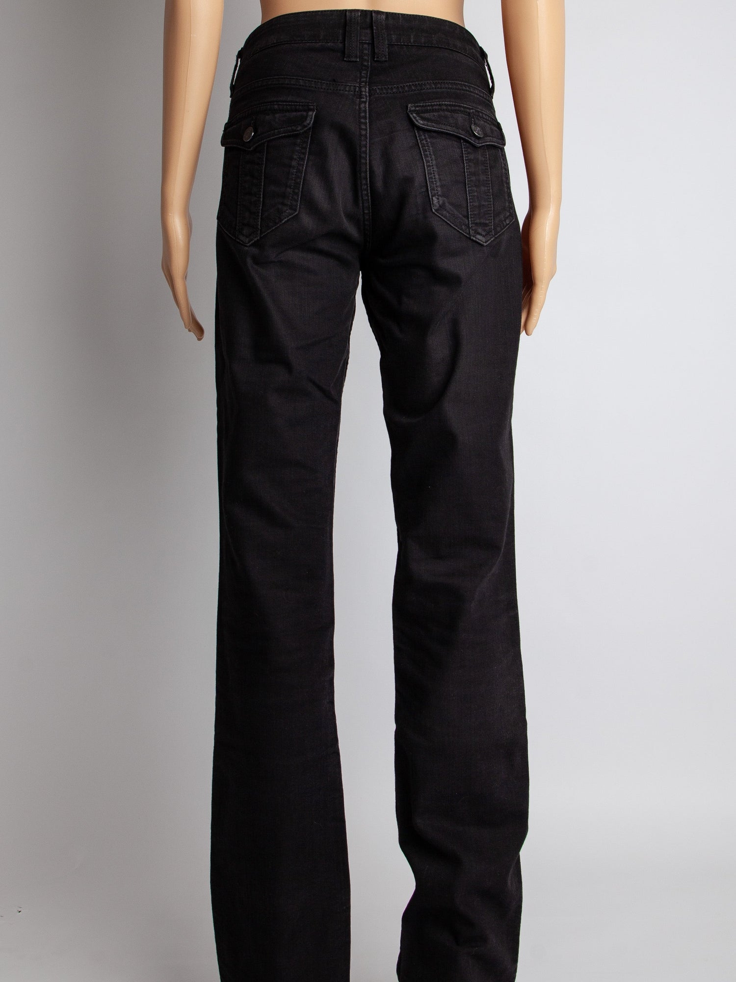 Crafted from natural cotton, these pants feature a timeless black color that complements any outfit. The fabric allows for breathability and comfort, making them ideal for all-day wear. Although there are minor signs of use, they maintain their original charm and fit true to size.