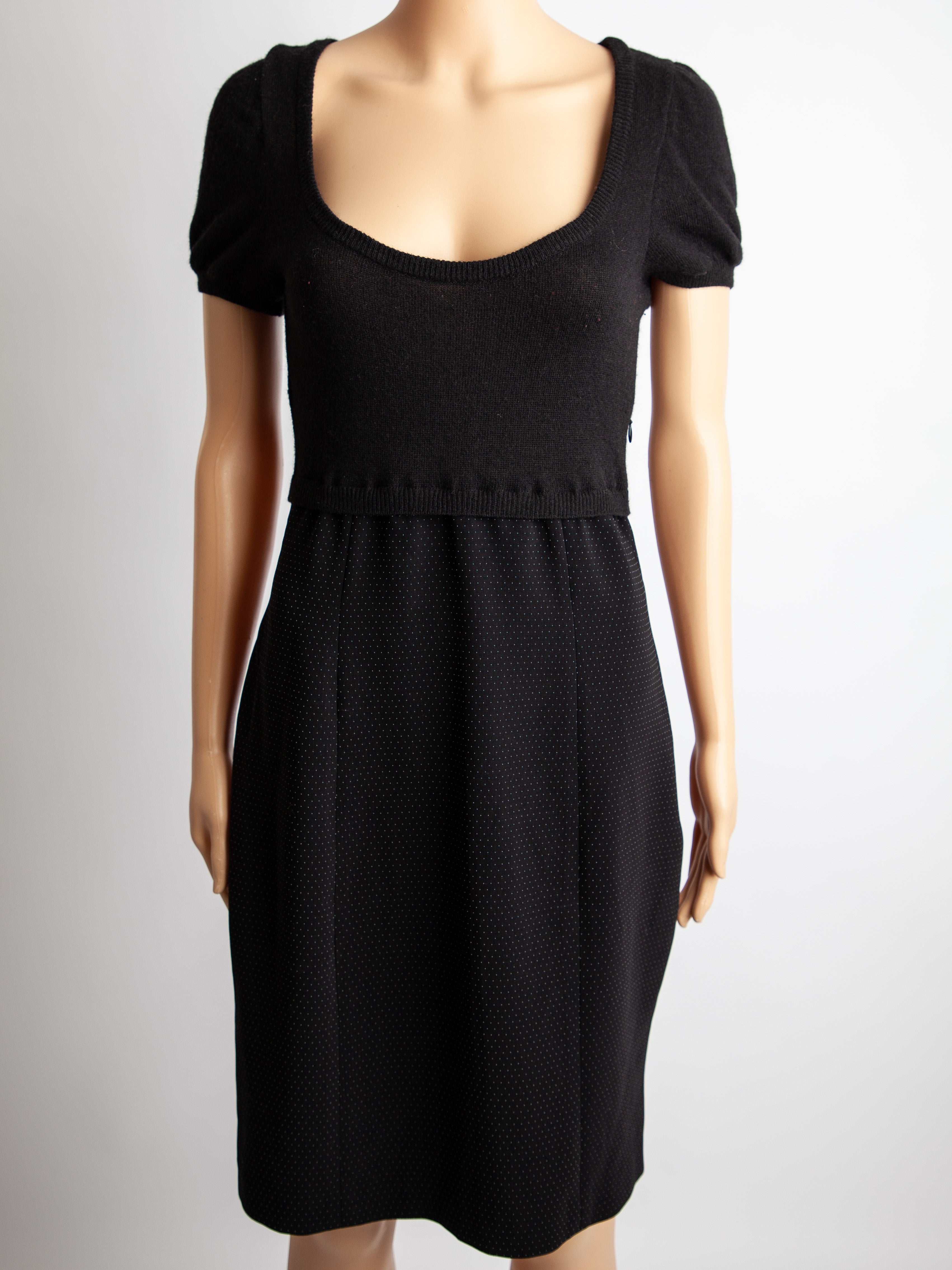 Good Moschino Black Dress M Polyester Knitted Top with Dotted Skirt