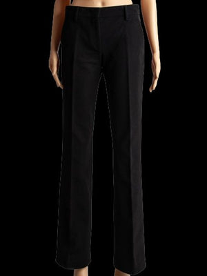 Good Prada Black Polyester Women's Pants - Stylish & Versatile These elegant black pants by Prada are a fantastic addition to any wardrobe. In good condition, these pants show minor signs of wear but maintain their high-quality allure. Designed for women, they showcase a timeless silhouette that can effortlessly transition from day to night. Crafted from durable polyester, these Prada pants offer comfort and a flattering fit. The sleek black color provides versatility, allowing you to pair them easily with various tops and shoes for multiple occasions, whether casual outings or more formal events. Additional details include a classic cut with a tailored finish, ensuring a polished look. The pants feature pockets for added functionality, making them suitable for both work and play. With no major flaws and a fit true to size, these pants are ready to become a staple in your clothing collection. Care instructions recommend dry cleaning to maintain the fabric's integrity and appearance. Embrace luxury fashion with these Prada pants, perfect for the modern woman looking for style and comfort combined. Please message me to confirm shipping timeframe. My full-time job involves traveling often, and shipping out may take longer than usual. Thanks for your interest.