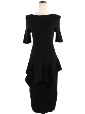 Gucci Black Wool Dress Size S with Draped Peplum Detail